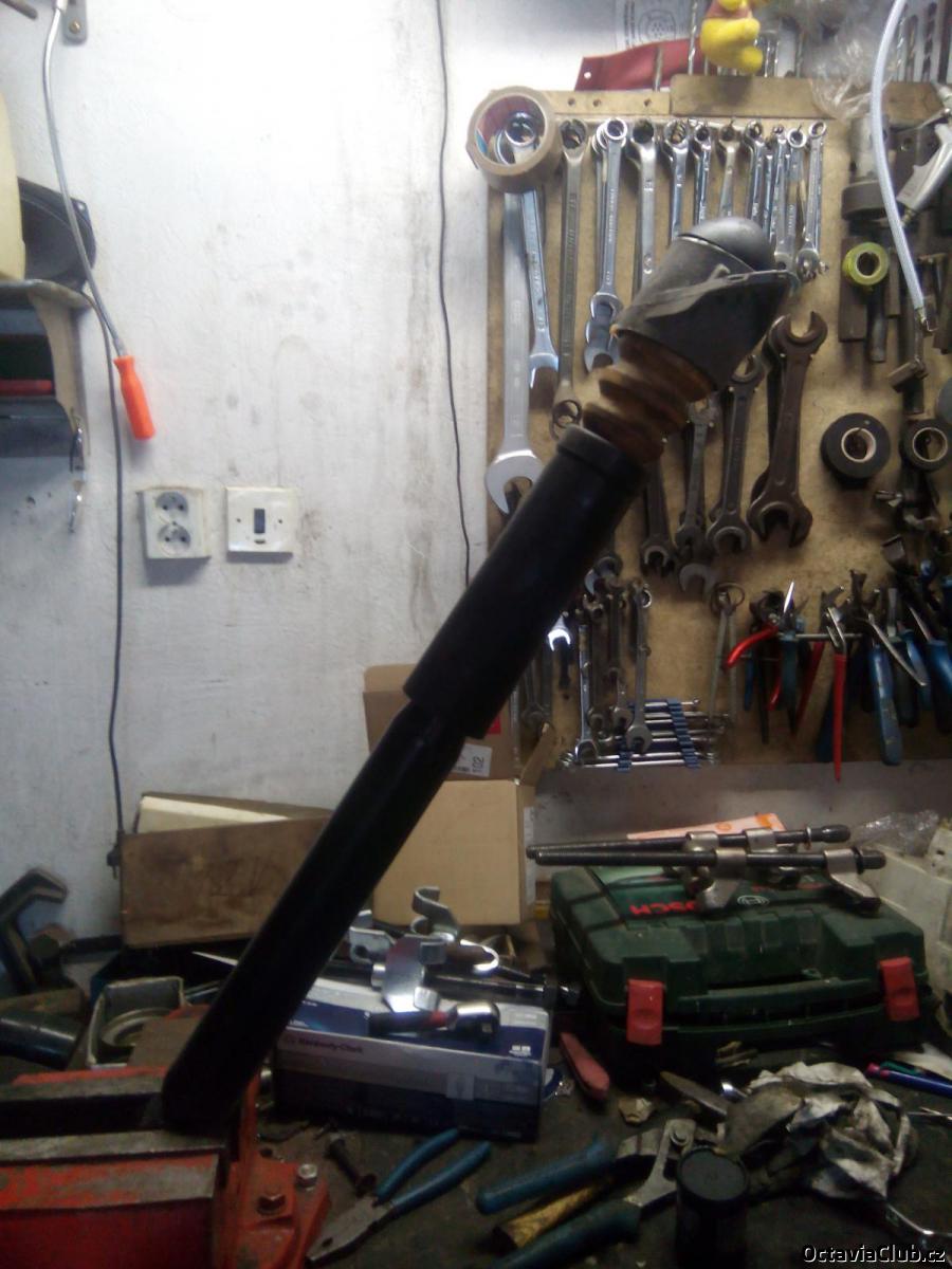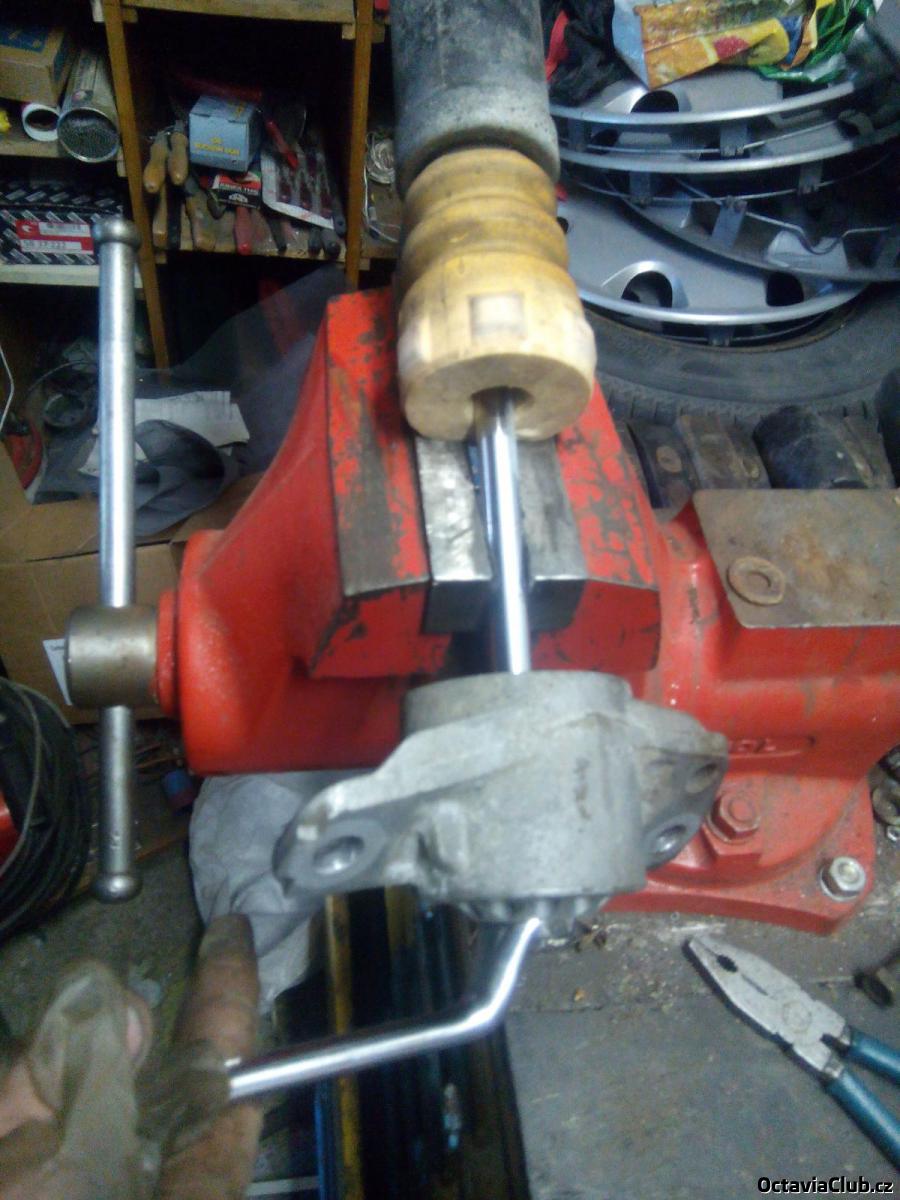 vemem nový tlumič osadíme krytkou a gumovým dorazem a nandáme to vrchní uložení,to utáhnem a nacvaknem krytku