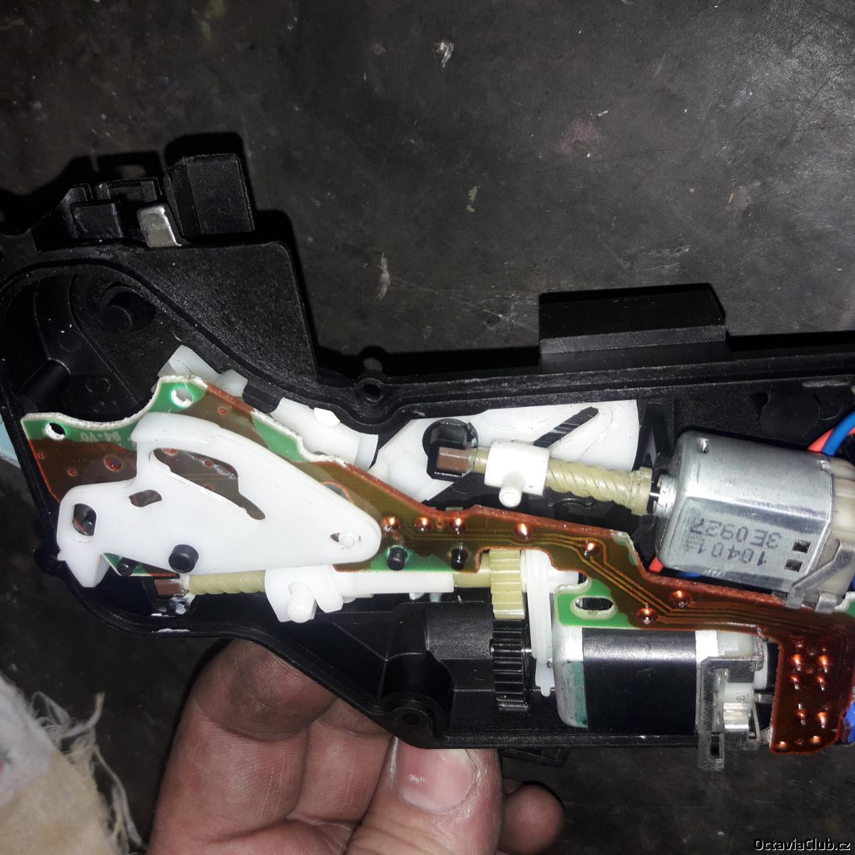 pokud točí vyndáme ten druhej motorek,kterej slouží k blokování mechanismu zámku také ho rozeberem a opravíme stejným způsobem jako ten první motorek po té co máme odskoušené oba motorky je třeba celý zámek poskládat,postupujem v klidu a pečlivě aby vše sedlo jak má po složení elektrické části zámku,zkompletujem do sebe mechanickou a elektrickou část zámku,zajistíme šroubky a nacvaknem jistící pružinu ted si vyskoušíme zda je zámek mechanicky funkční,zacvaknem západku a musí jít otevřít jak táhlem pro lanko venkovní kliky tak táhlem pro bovden vnitřní kliky
