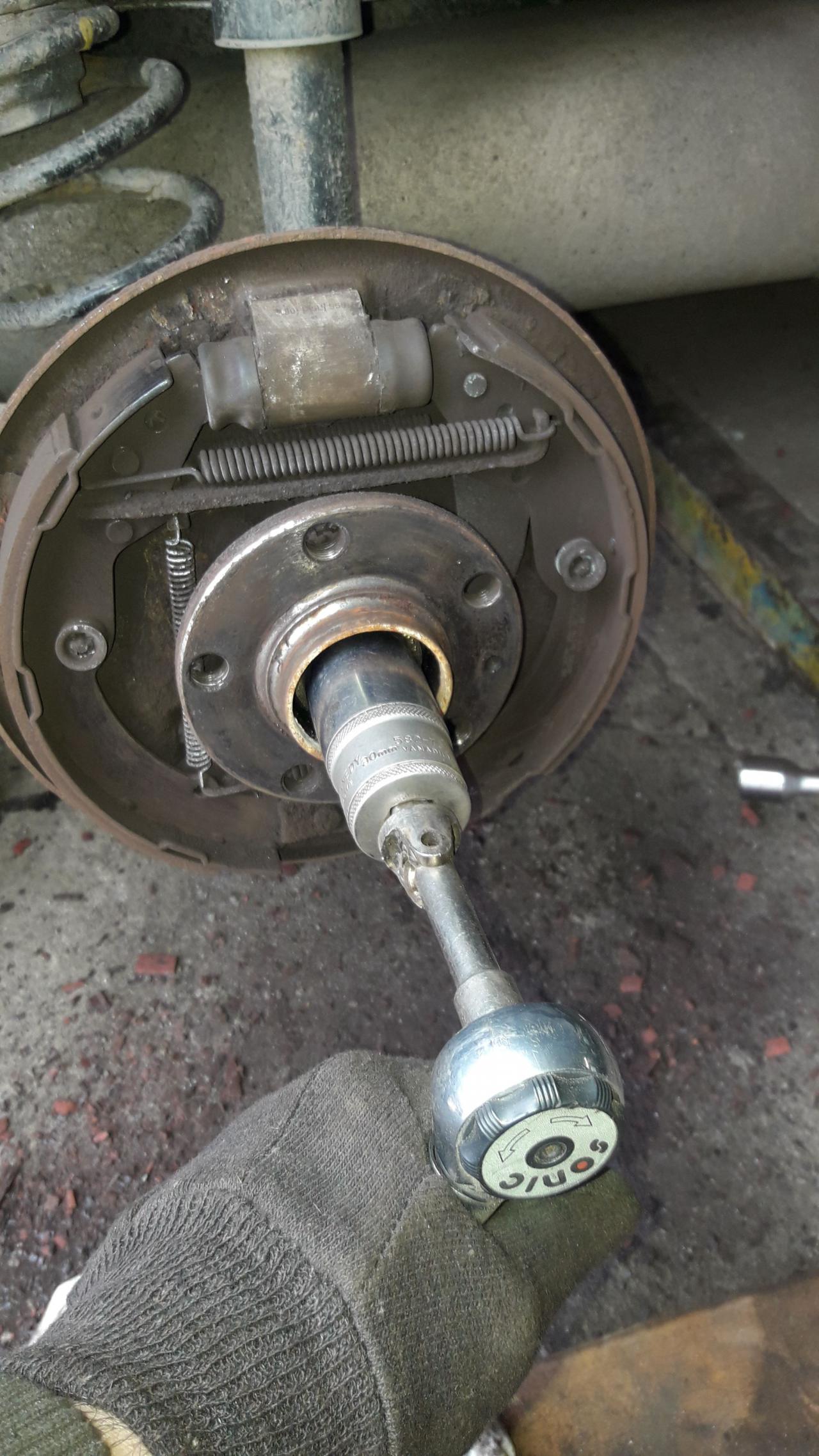 dále nastavíme klínek samostavu tak aby šel brzdový buben kapku z tuha nasadit zajistíme brzdový buben a máme hotovo