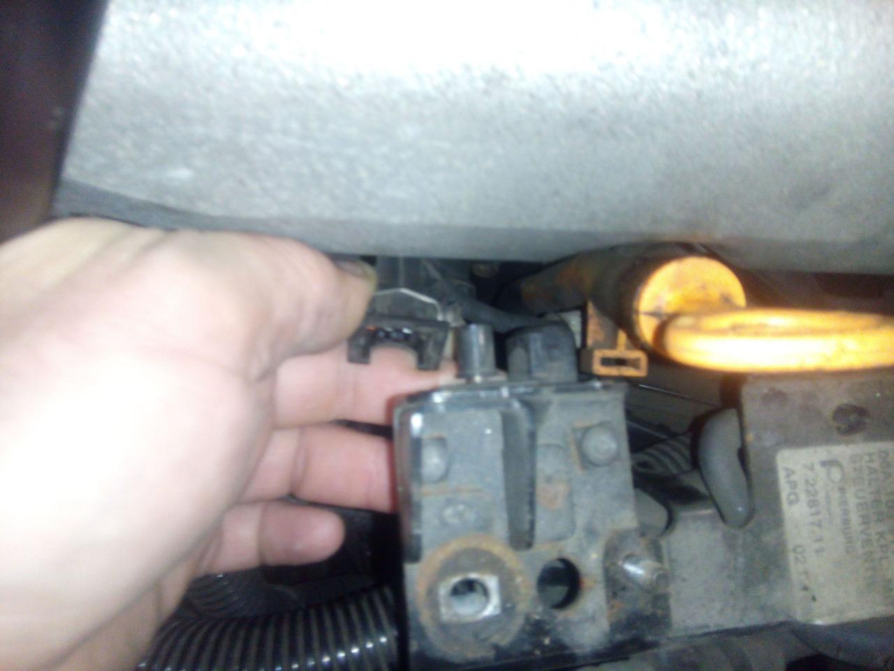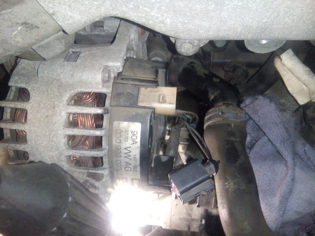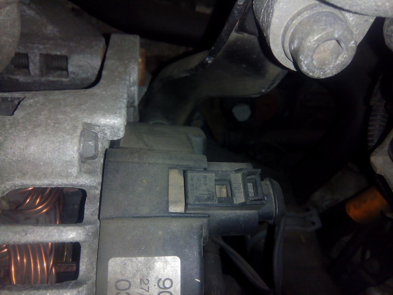 na držák uchytíme tu vroubkovanou hadici,nacvaknem konektor do alternátoru,