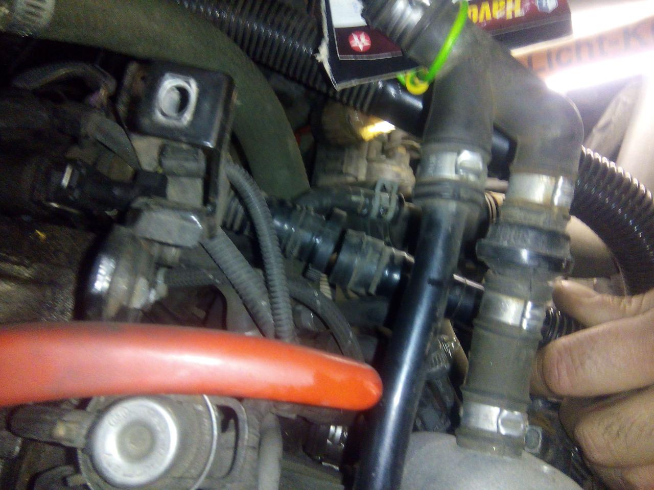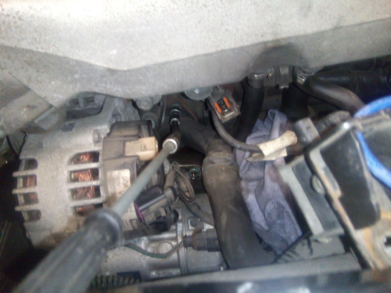 ted je třeba povolit šrouby co drží domek termostatu kapku tam překáží alternátor a nejvíc přívodní plus k alternátoru pokud se necejtíte tak si přívod odpojte a demontujte z ůchytu a pak je tam ten přístup poměrně dobrej