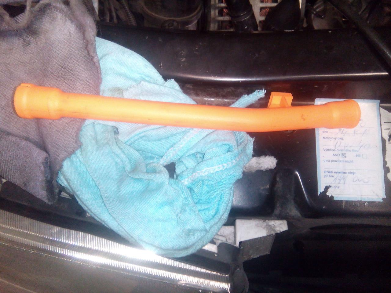 pokud by si někdo přitom ulomil trychtýř na měrku oleje či jí měl zlomenou už před tím může jí vyměnit