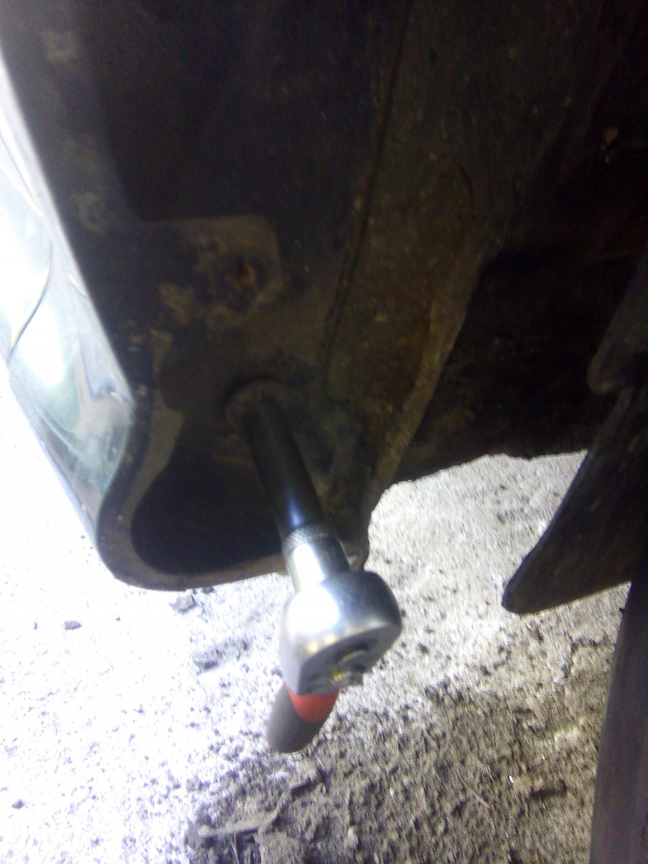 vytočit přední kolo na maximum tak aby se člověk dostal na torxi co dole v rohu u prahu drží podběh povolíme dva torxi dole a jeden navrchu u blatníku,to mám stačí na to aby šel ten plast z části sundat,odehnout a šprajcnout za kolo tak aby nepřekážel ted šroubovákem vyškrabem ten mokrej bordel co tam je a že ho tam je poté povolíme dvě plastové matky,jednu dole a druhou nahoře a sundáme krycí plast sloupku