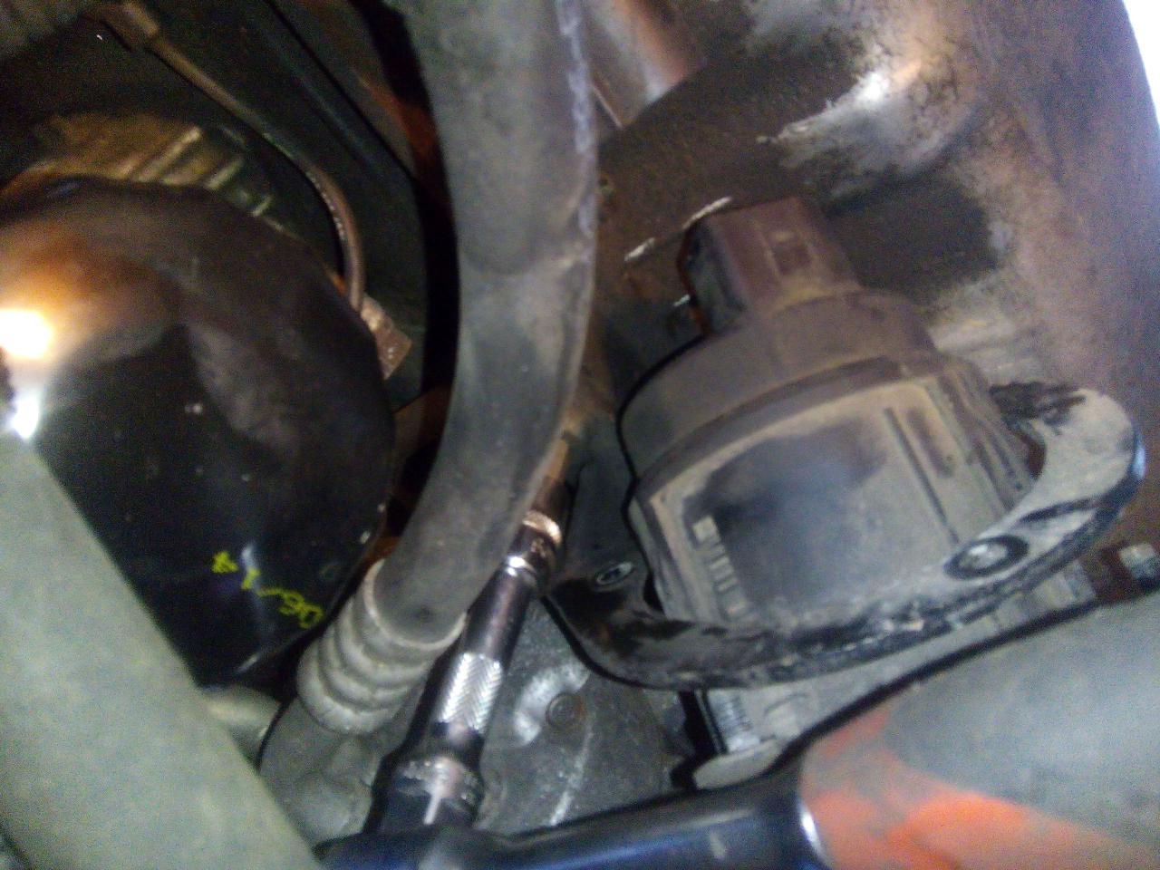 sundáme plast pod motorem z vývěvy odpojíme elektrický konektor dále povolíme 3 matičky co drží v držáku samotnou vývěvu ted z vývěvy vycvaknem obě hadice dále je třeba povolit oba spodní imbusy jenž drží celej ten železnej držák vývěvy poté si držák kapku vyhnem -sundat nejde musel by se povolit ještě třetí imbus a vzhledem k jeho umístění se mi do toho jít nechtělo - a vývěva de vytáhnout ven no a hned sem viděl kde je problém,