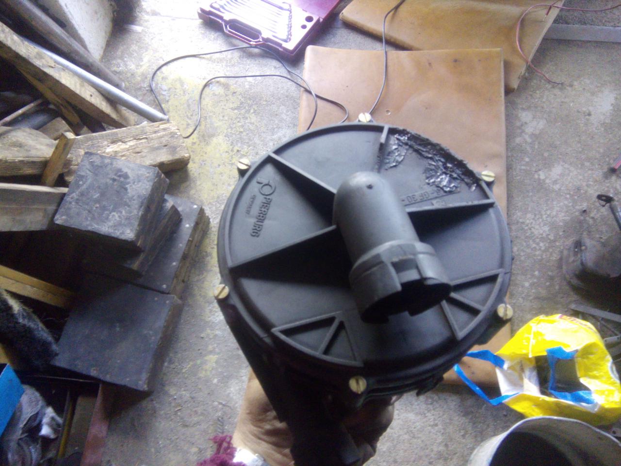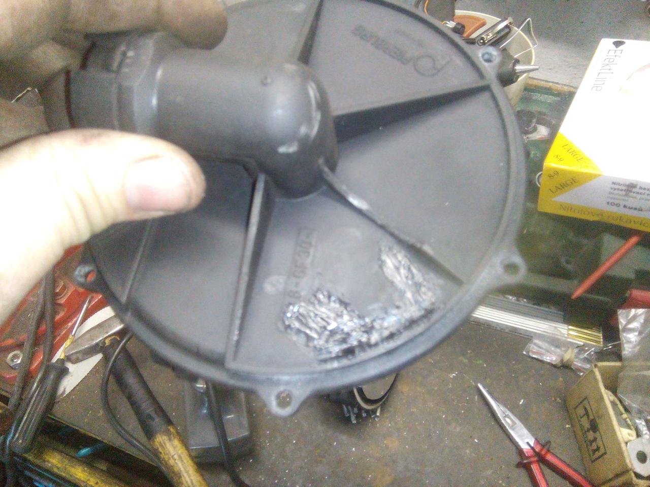 je třeba odvrtat a vytáhnout hliníkový nejty poté vycvaknem to vrchní víko vývěvy bylo vidět že to trochu odnesla i samotná vrtulka, chtěl sem to celý rozebrat ale nepodařilo se mi povolit tu vrchní matku,