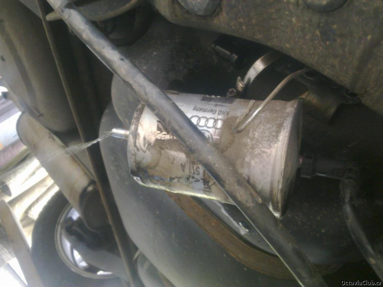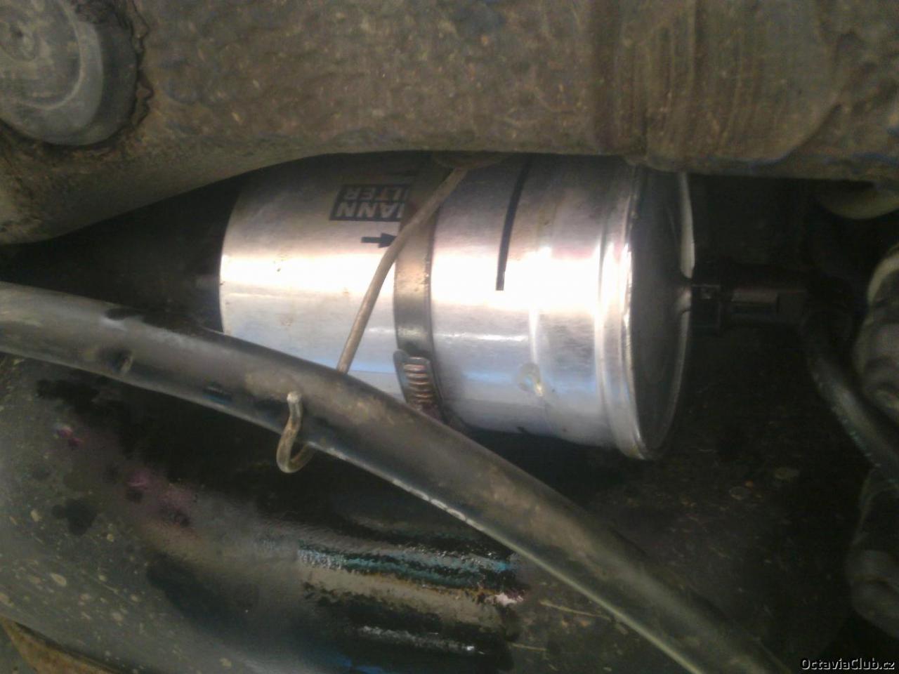 najedem si na rampu,nájezdy či zvedneme pravou zadní stranu auta tak aby sme se pod ní vešli pak si vyháknem s držáku bovden ruční brzdy pro lepší přístup k filtru dále pokud to pude povolíme objímku filtru pokud ne holt jí odstřihnem poté je dobré si na zem pod filtr dát nákou nádobu at nám po odpojení filtru nebleje benzín všude okolo ted je potřeba vycvaknout sponu na výstupní straně filtru a stáhnout hadici