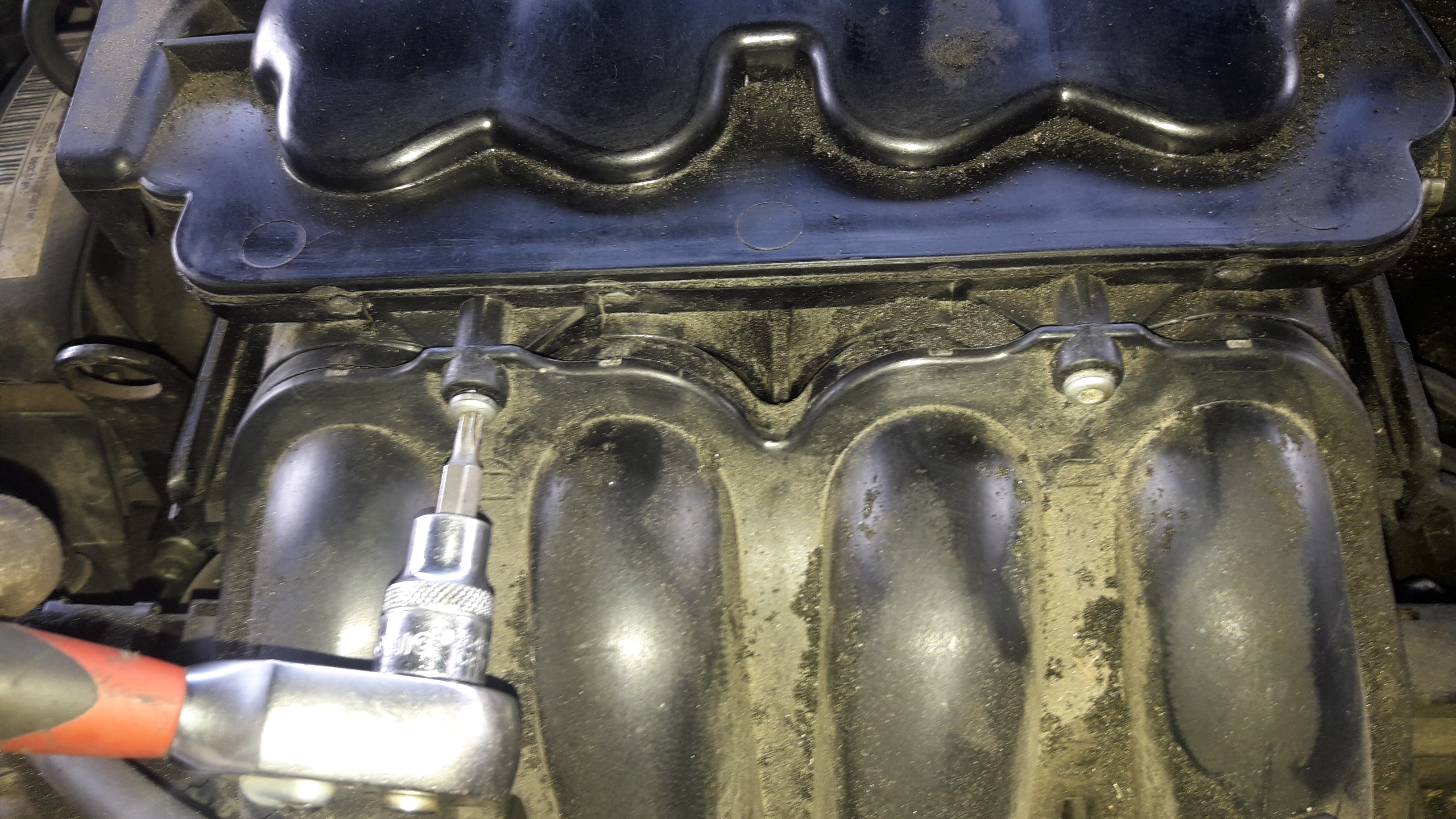 ted je třeba sundat to plastový sání,z předu povolíme oba torxi pak vycvaknem oba ty umělohmotný trny viz foto: ted povolíme oba imbus šrouby co drží to sání ze zadu,z pravý strany tam neni vidět a je tam naprd přístup z tý levý do de v pohodě dále odpojíme hadici podtlaku viz foto: a odpojíme od elektriky a podtlaku regulaci výřivých klapek ted si z předu sání povycvaknem obě plastový pojistky a povytáhnem si to ven abychom to dostali ven je třeba odpojit ukostřovací měděnej pásek já to vyloupl z toho plastu i se závitovou vložkou sání dáme stranou ted je třeba sundat víko ventilů,vycvaknem vrchní kryt rozvodú