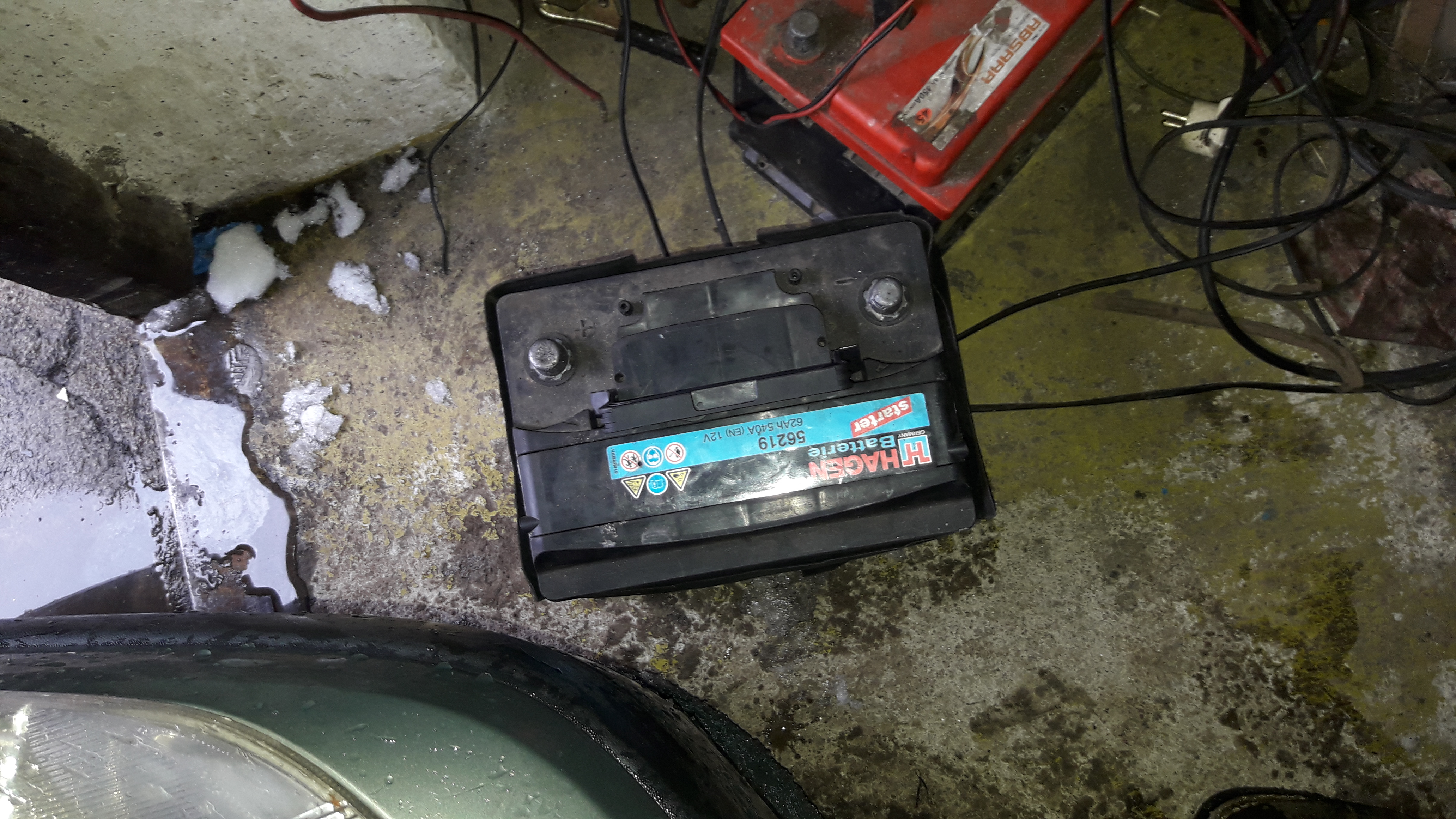 vycvaknou box s tavnýma pojistkama a odpojit přívody z baterie poté povolit ve spodní části držák co drží baterku a baterku vyndat z vozu