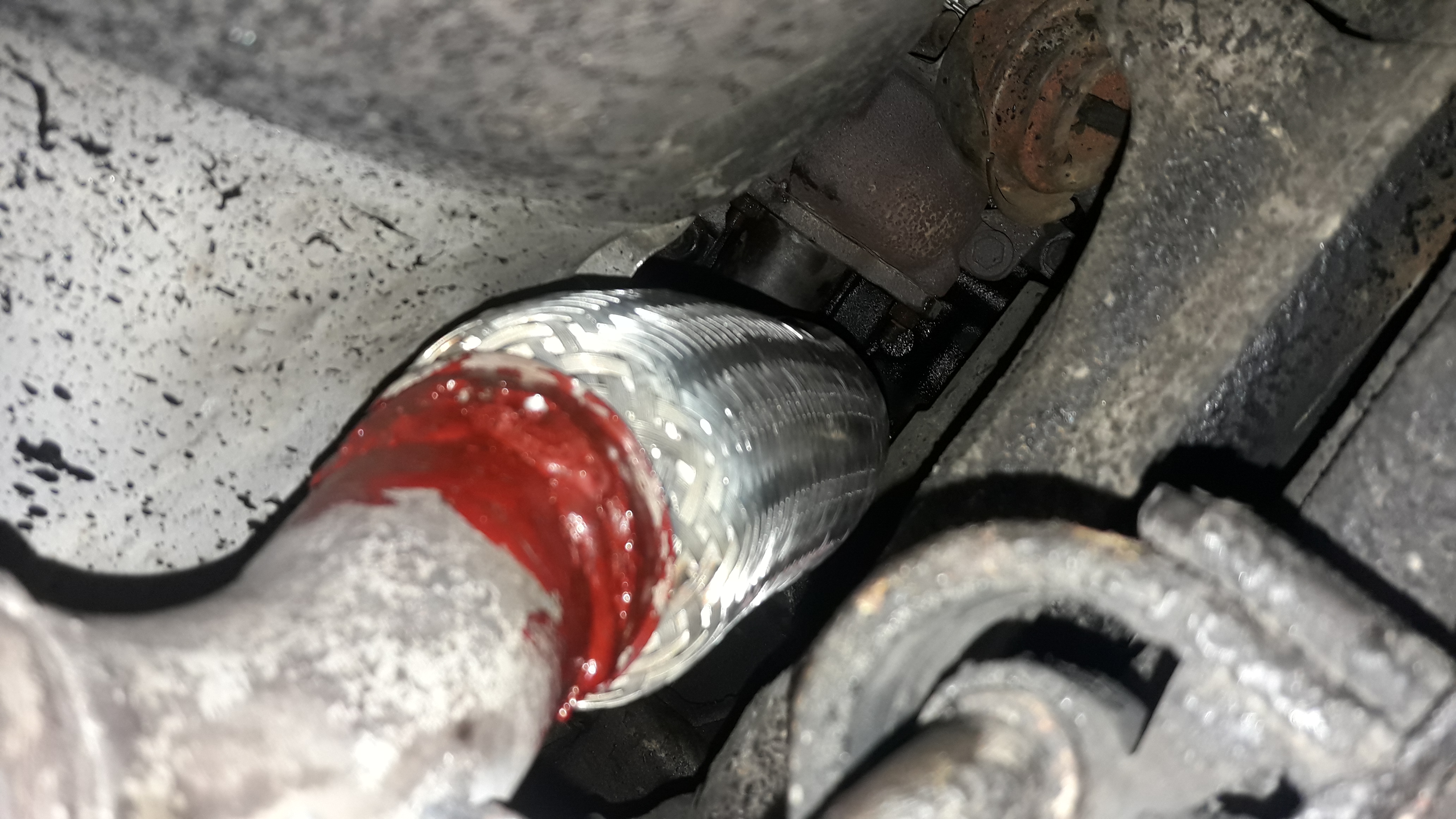 ted je třeba ten kat s novým vlnovcem namontovat do vozu - dotáhnem 3 šrouby na přírubě uchytíme oběma šrouby silent do nápravy - já si před tím závitníkem protáh oba závity