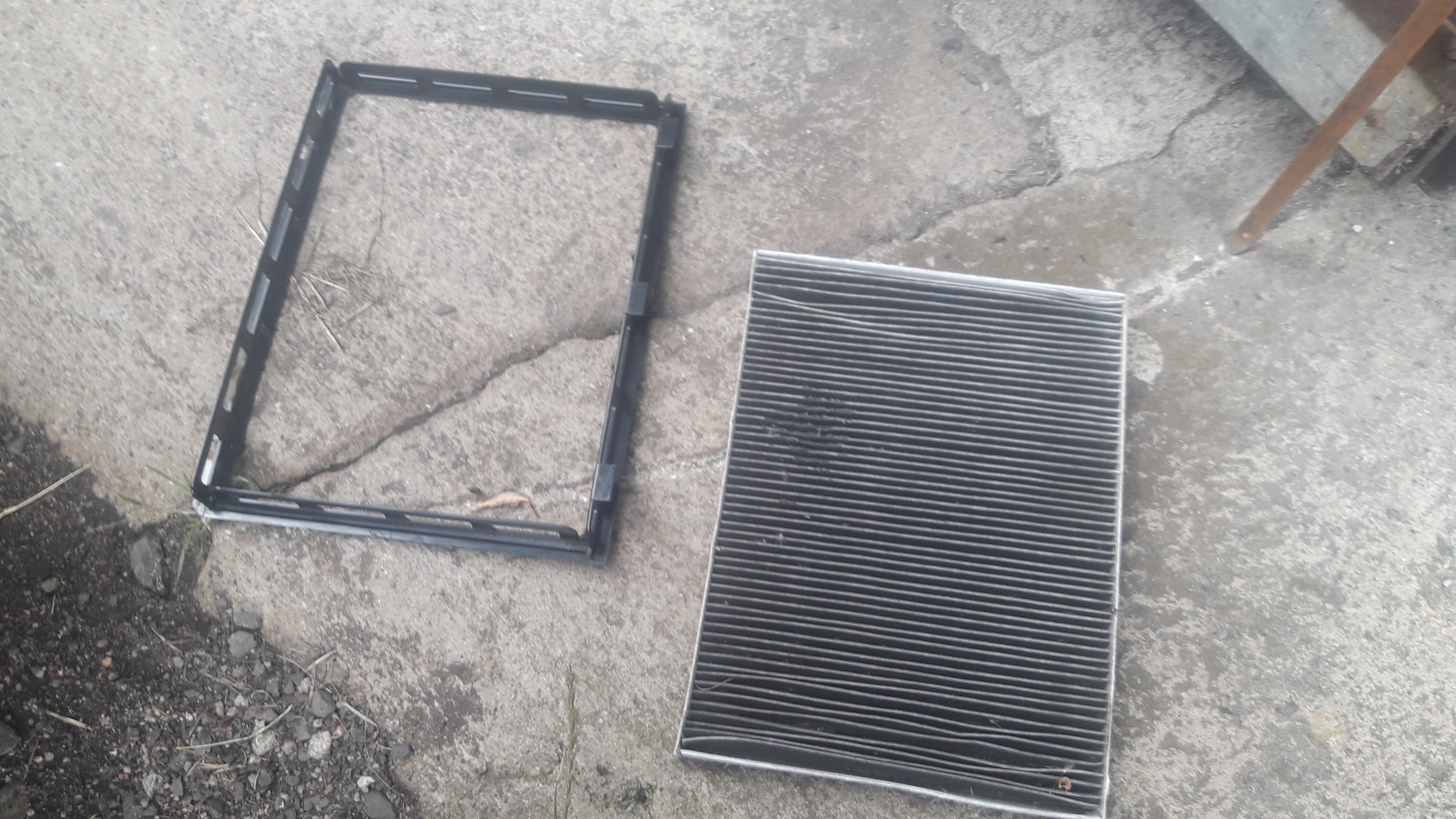 dáme novej filtr do rámečku a nacvaknem to do vozu ted si vyčistíme drážku pro ten krycí plast já ji ho i stříknu mazivem a nacvaknu zpět