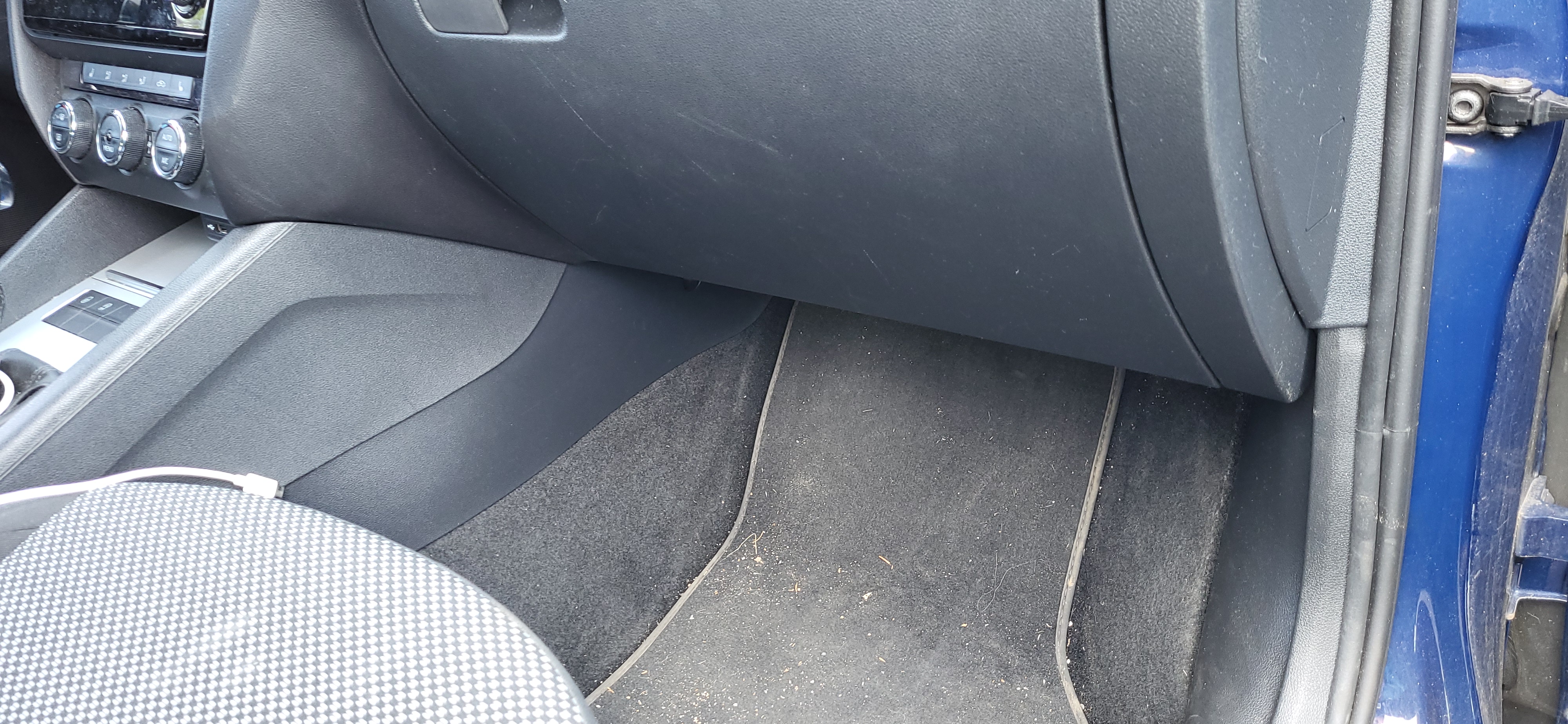 dole v nohách spolujezdce demontujem dvě plastový matky a sundáme ten kryt