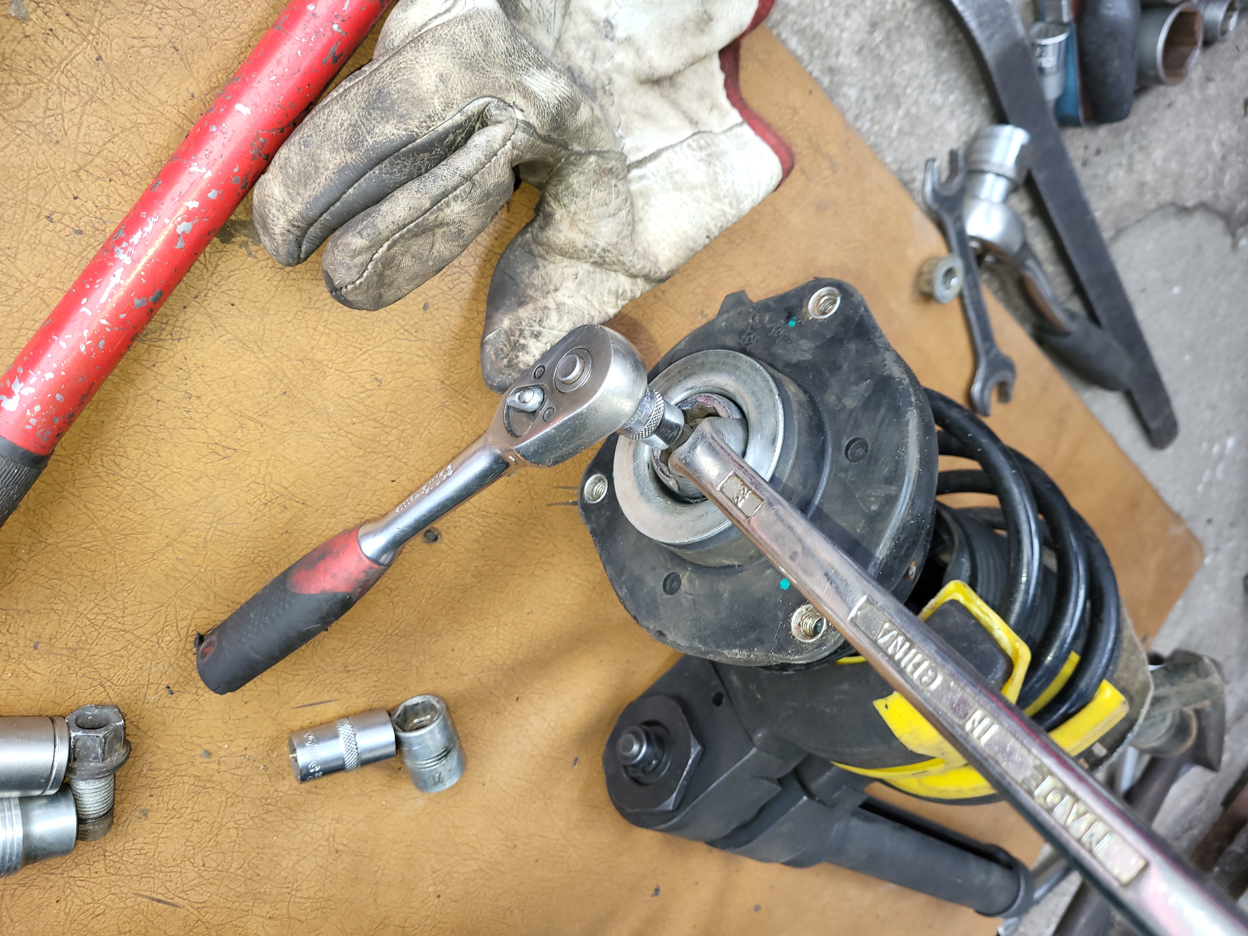 ted si jen povolíme matku co drží to horní uložení - jen povolit :pozor: :pozor: nikdy nevyšroubovat celý protože to vystřelí a dá vám to po hubě :tone: