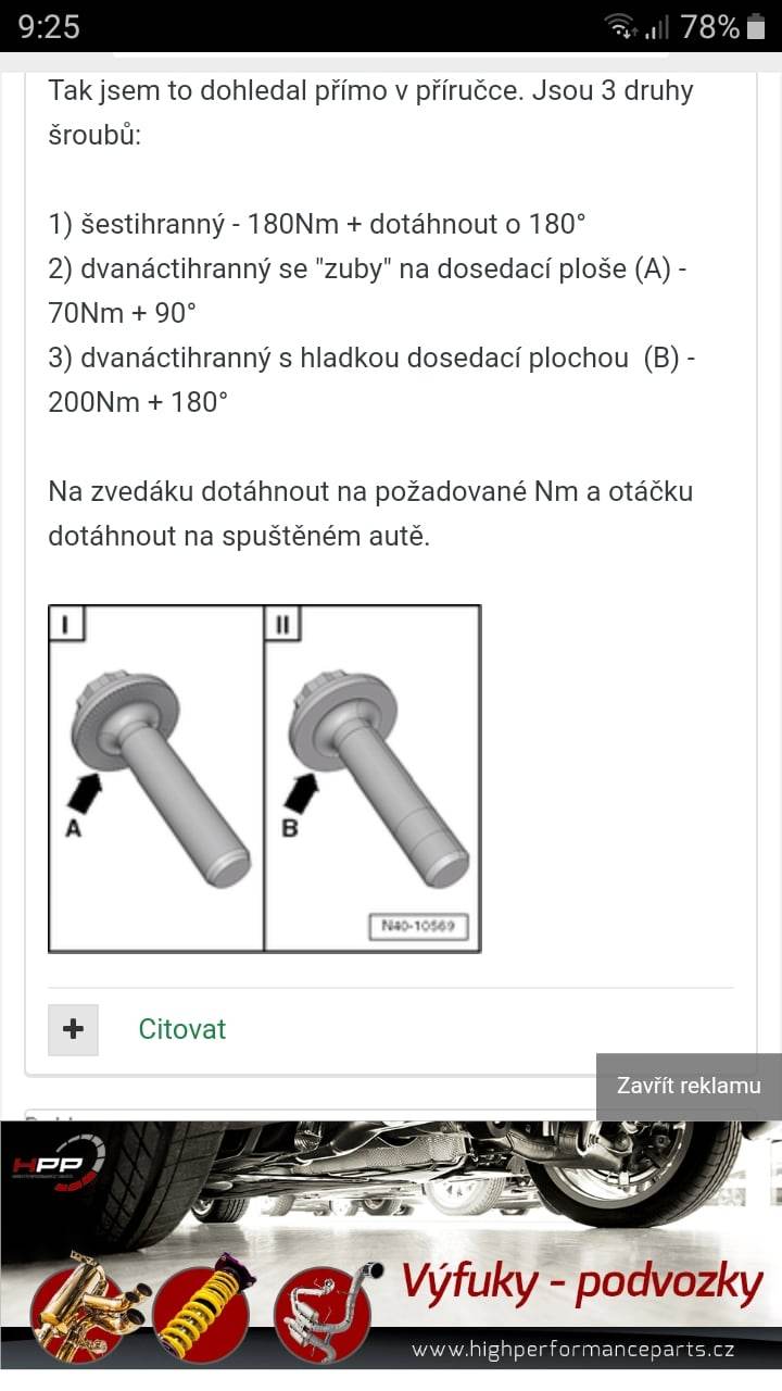 povolit šroub co drží tlumič v těhlici potřebujem nástavec XZN 14