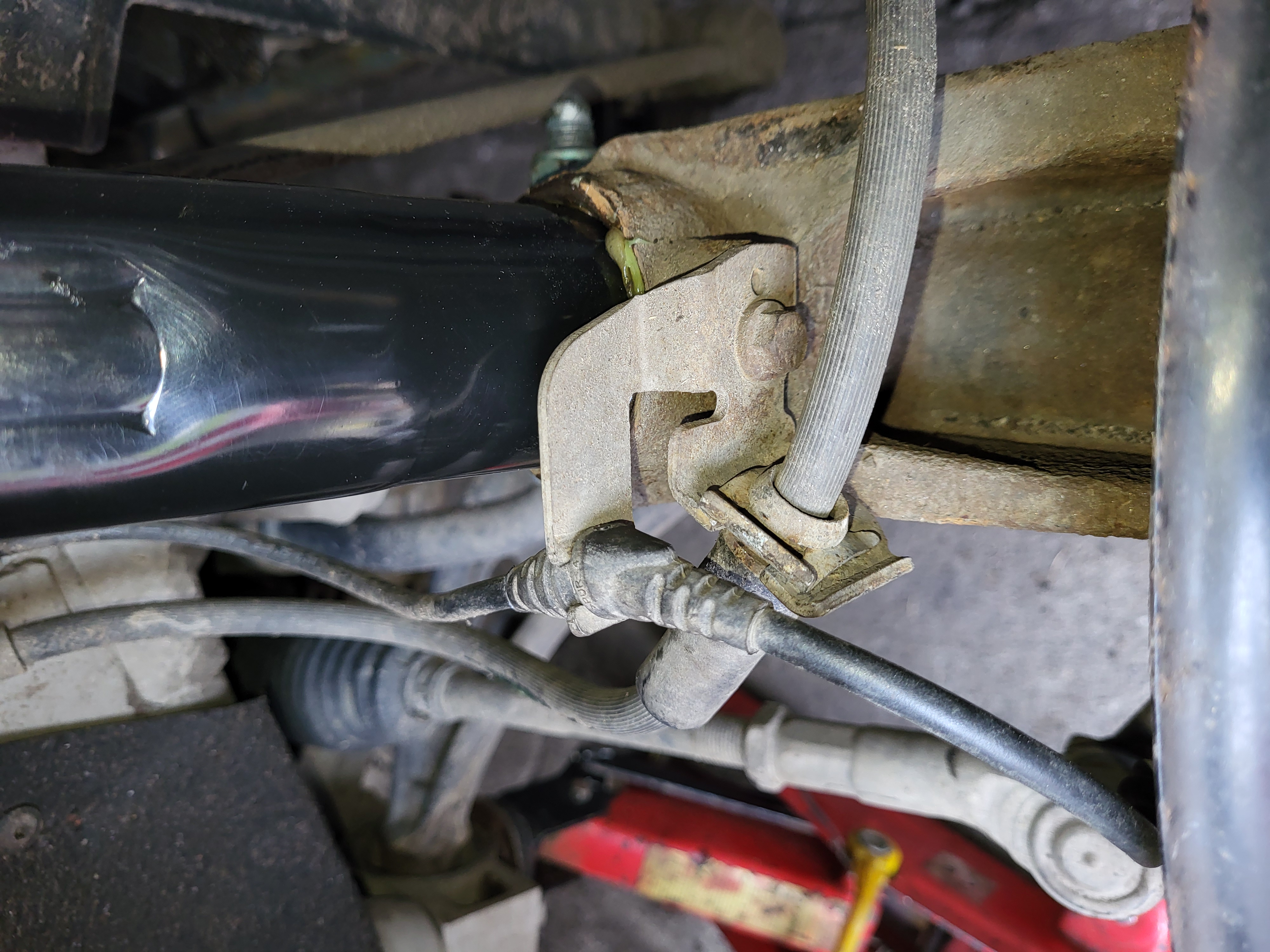 nandáme do držákú brzdovou hadičku a kablík od ABS
