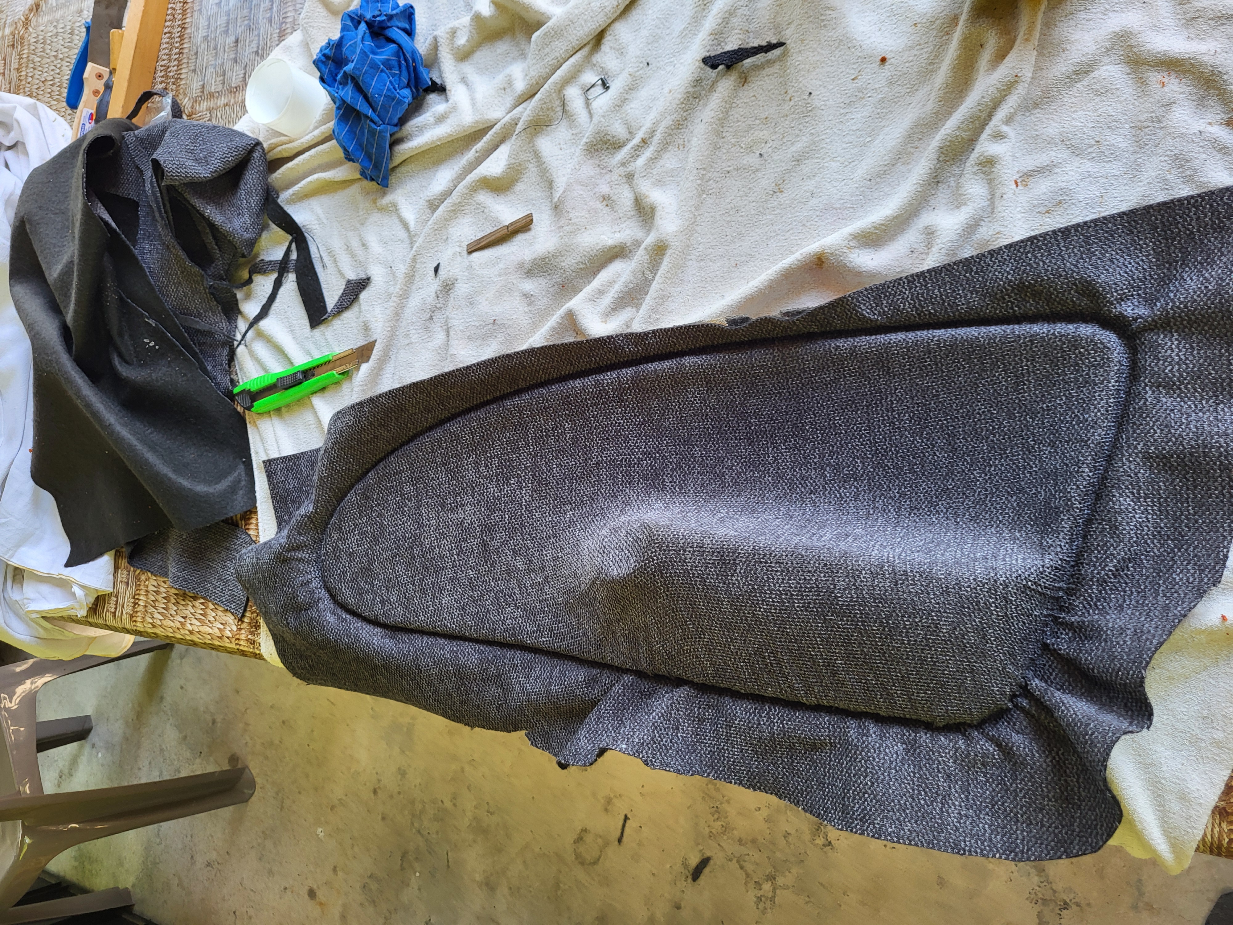 nebylo to díky členitosti ůplně jednoduchý navíc látka co sem zvolil byla bez molitanu a nebyla ůplně poddajná