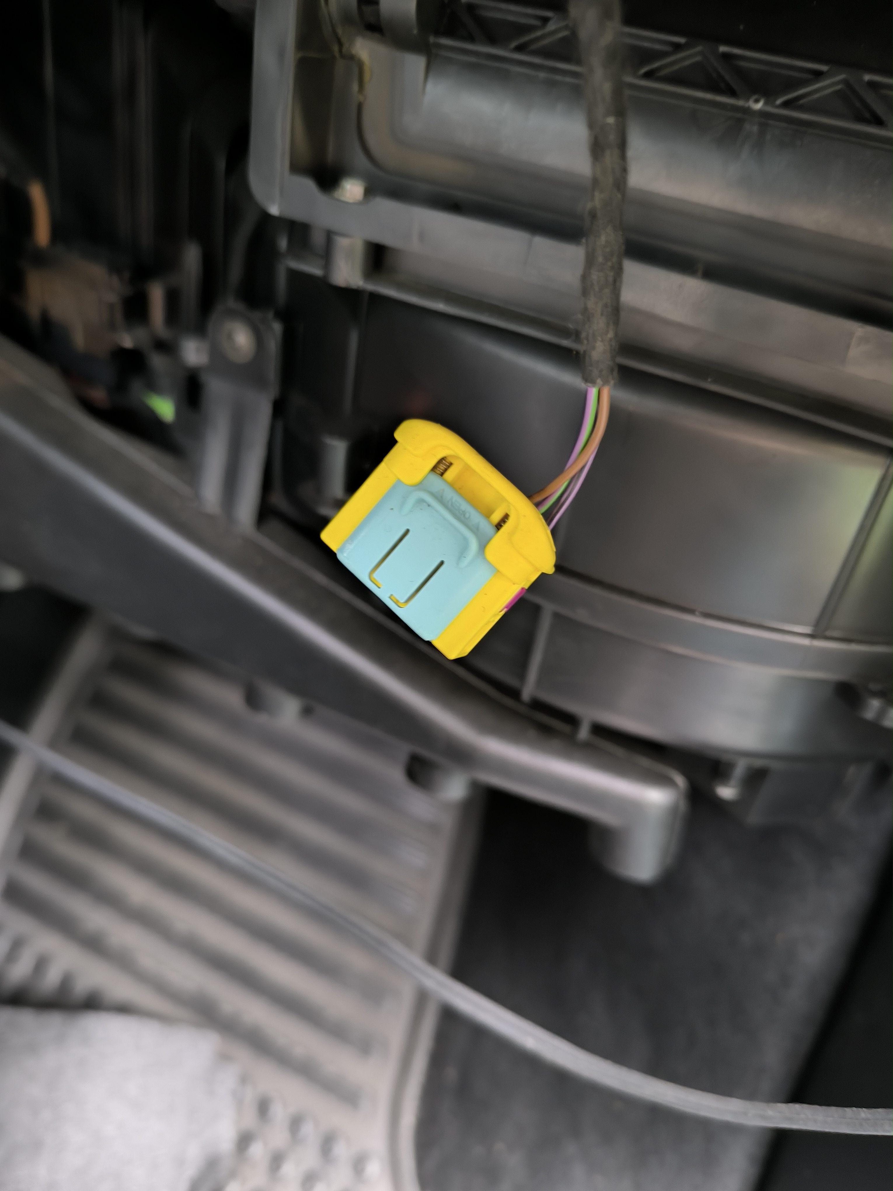 drží ho ještě konektor osvětlení a hadice klimatizované přihrádky ale to nám nepřekáží a neni třeba to odpojovat :pozor: