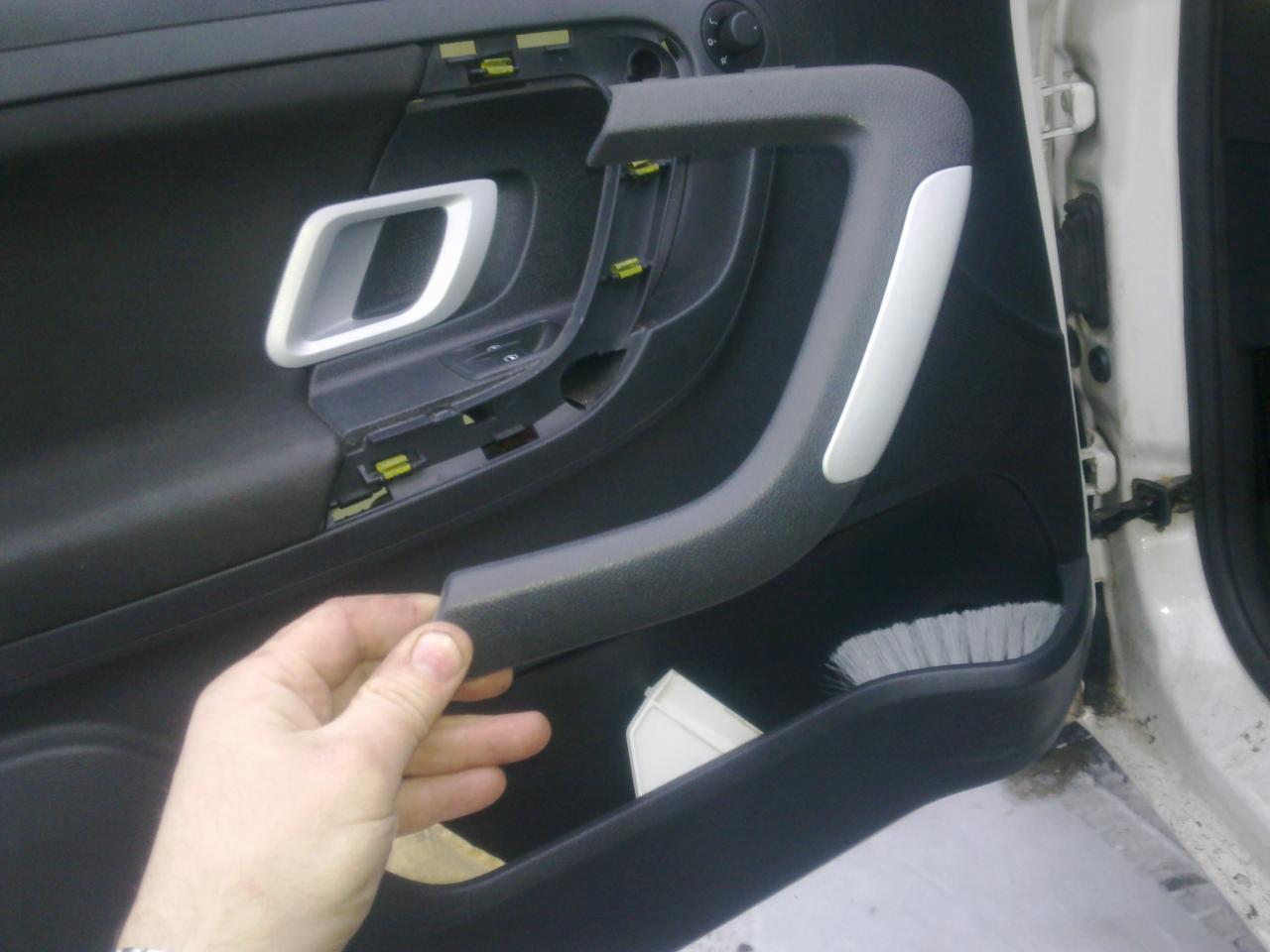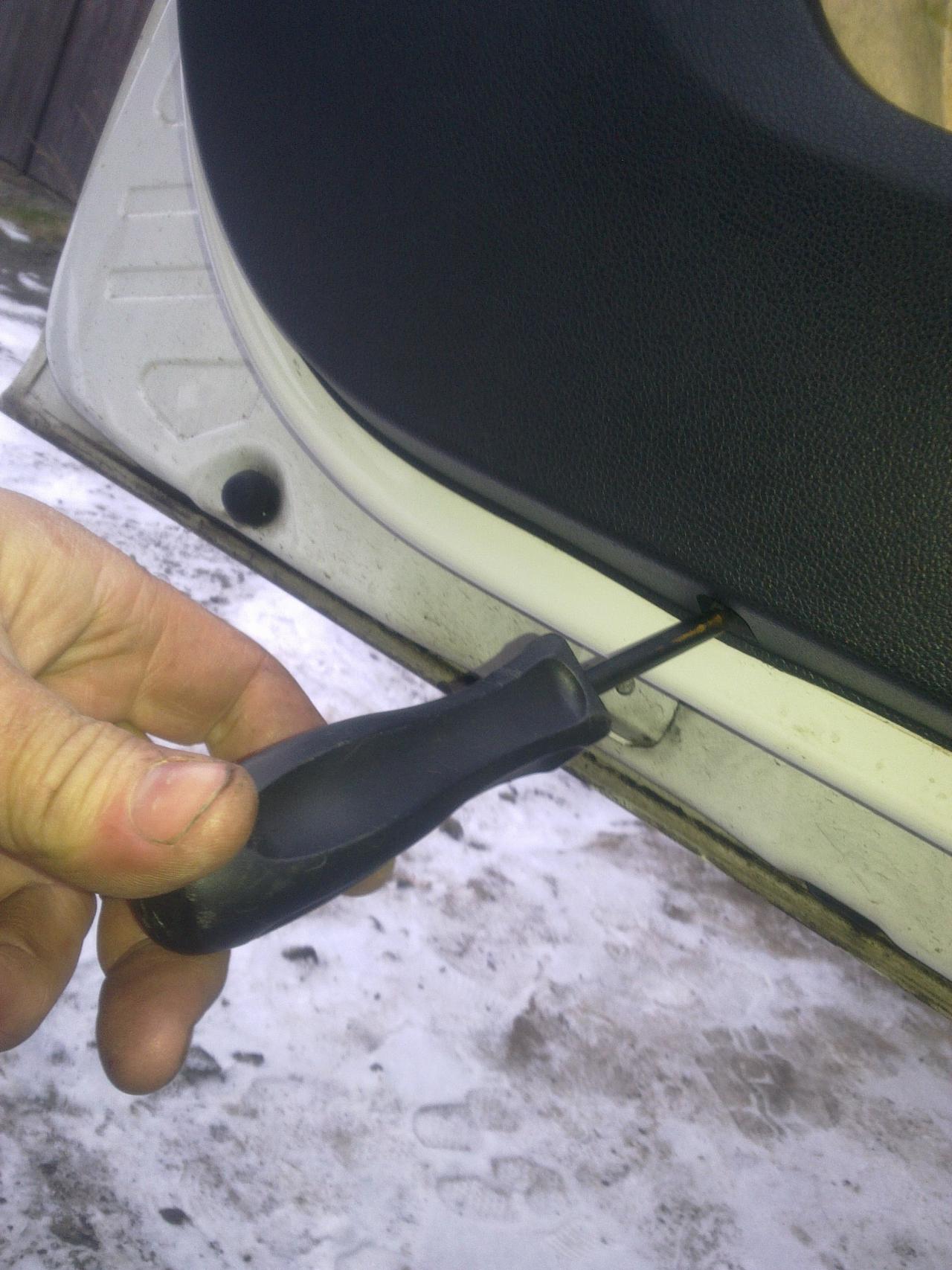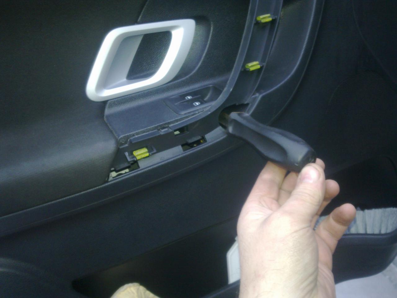 pote je třeba za tapecírungem odpojit konektor ovládání oken,nastavení zrcátek a safe diody ted je potřeba směrem nahoru vytlačit tapecírunk neb je zaháklý za rantl okna