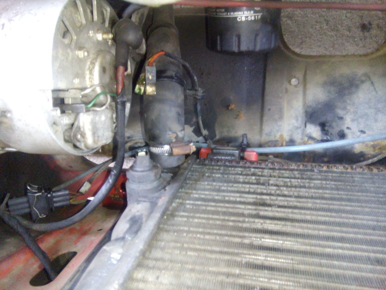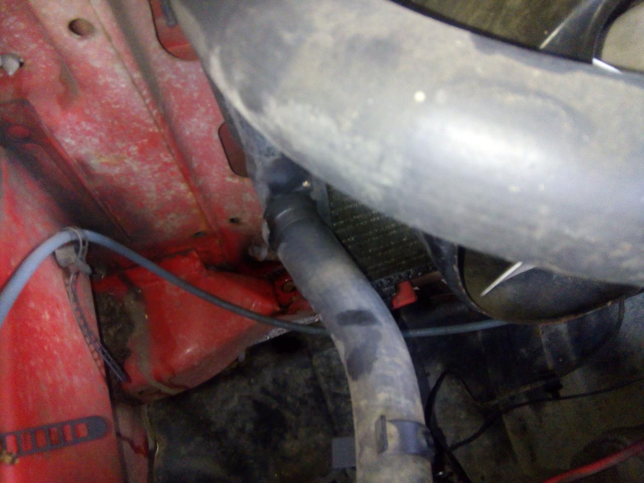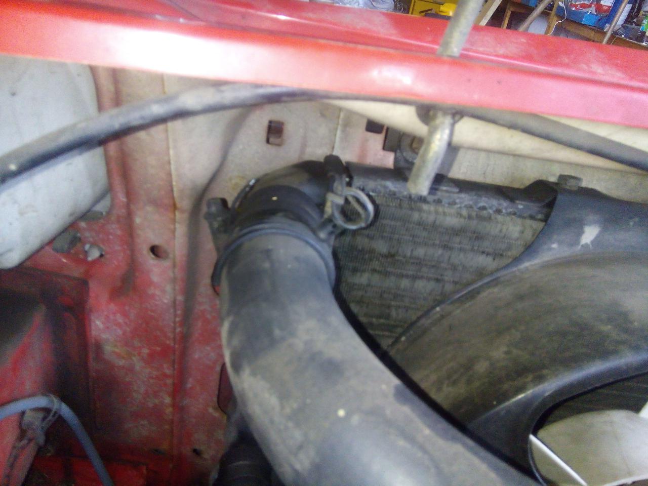 dále přehodíme i čidlo spínání ventilátoru,popřípadě i hadici na vodu pokud bychom jí sundali u termostatu a né s chladiče ted je třeba chladič namontovat zpět do vozu- dole nasadíme do silentbloků a nahoře uchytíme na oba šrouby a utáhneme dále nasadíme a zajistíme sponou všechny hadice ,nacvaknem konektor na čidlo na chladiči a na ventilátor ted si nalejem do expanzky směs vody a nemrznoucí kapaliny,natočíme auto,necháme ohřát do otevření termostatu -poznáme tak že je horkej komplet celej chladič či nám sepne ventilátor na chladiči a poklesne hladina vody v expanzní nádobce vodu dolejeme a máme hotovo