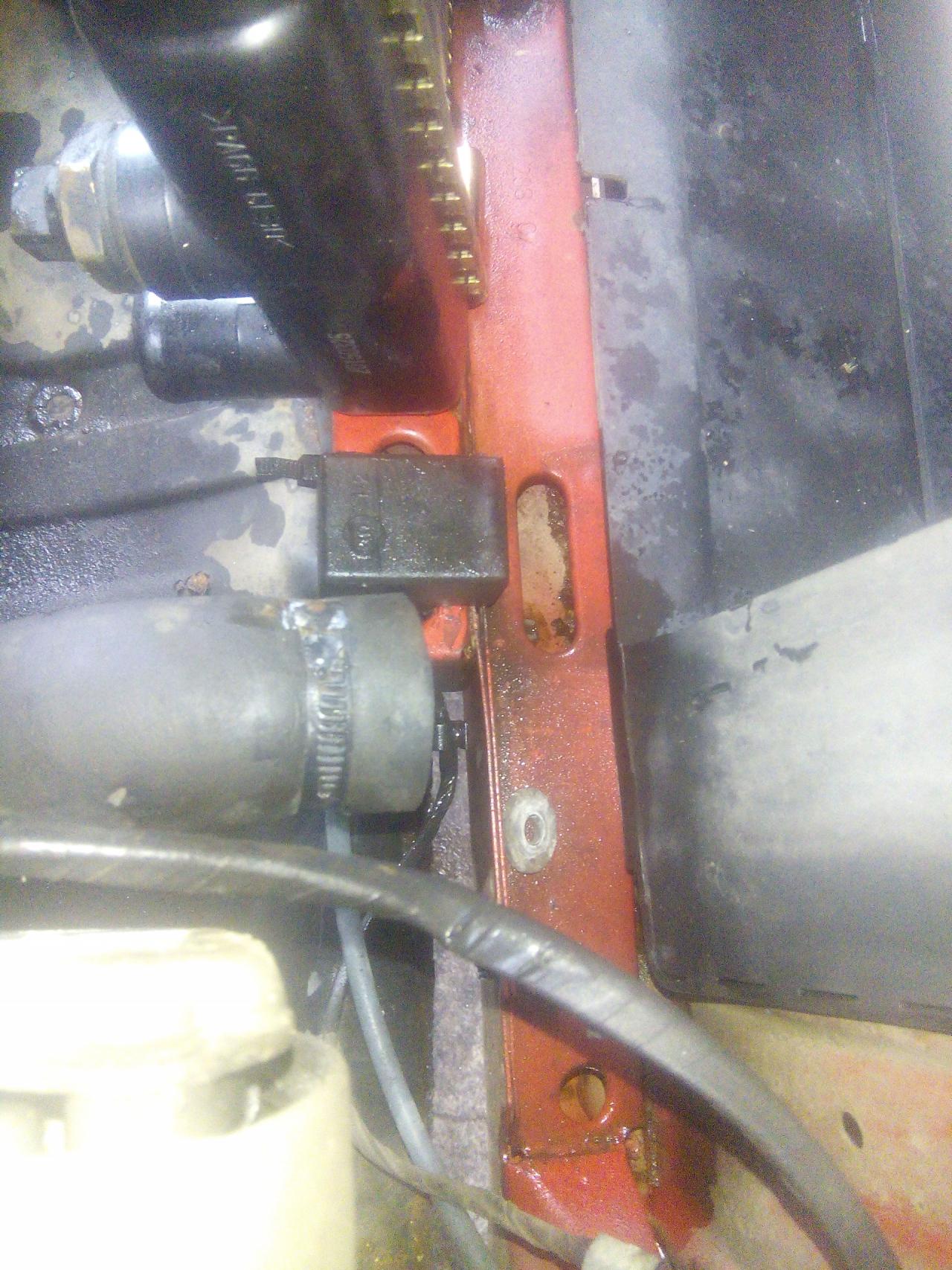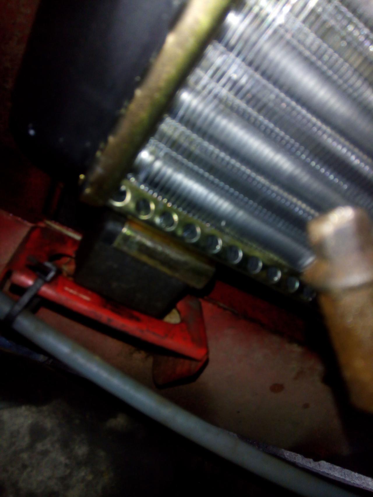 ted je třeba odpojit konektor s čidla chladiče a z ventilátoru poté na levé straně povolíme a stáhnem obě hadice ted si povolíme samotný chladič ,drží ho nahoře dva šroubky viz foto dole je to nasazený na gumových silentech stačí jen vytáhnout