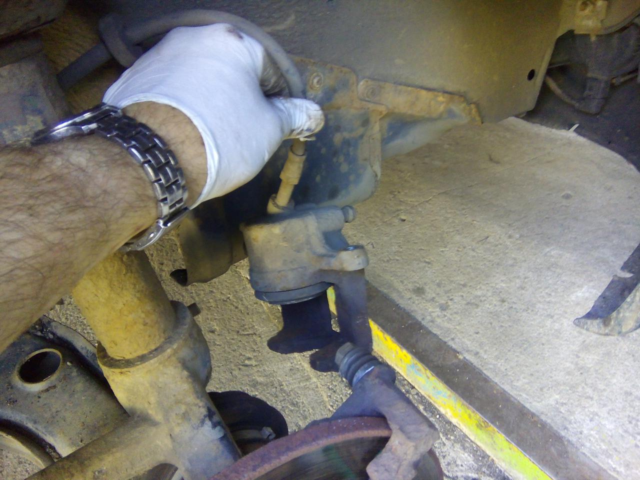 zvednout auto podložit tak aby na nás nespadlo,sundat kolo,povolit a sundat komplet celej brzdič