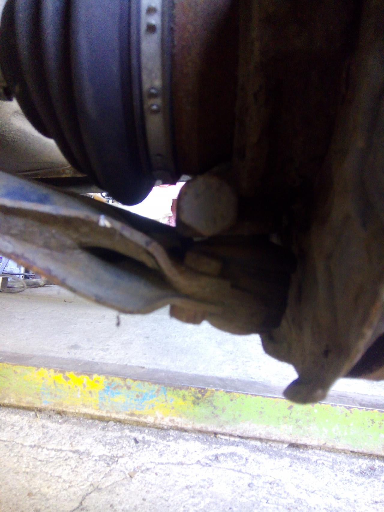 dále povolíme a vyklepnem šroub jenž zajištuje spodní čep a ten vytáhnem s těhlice