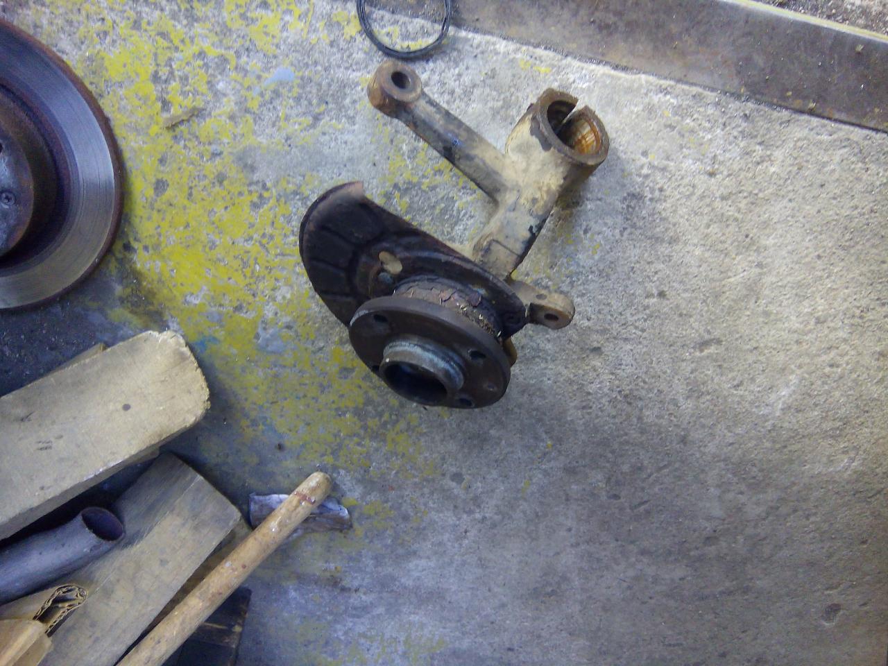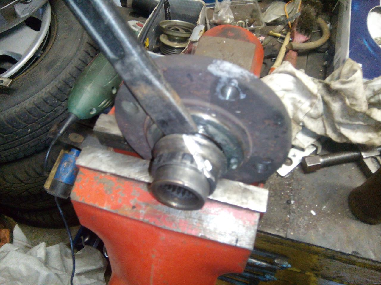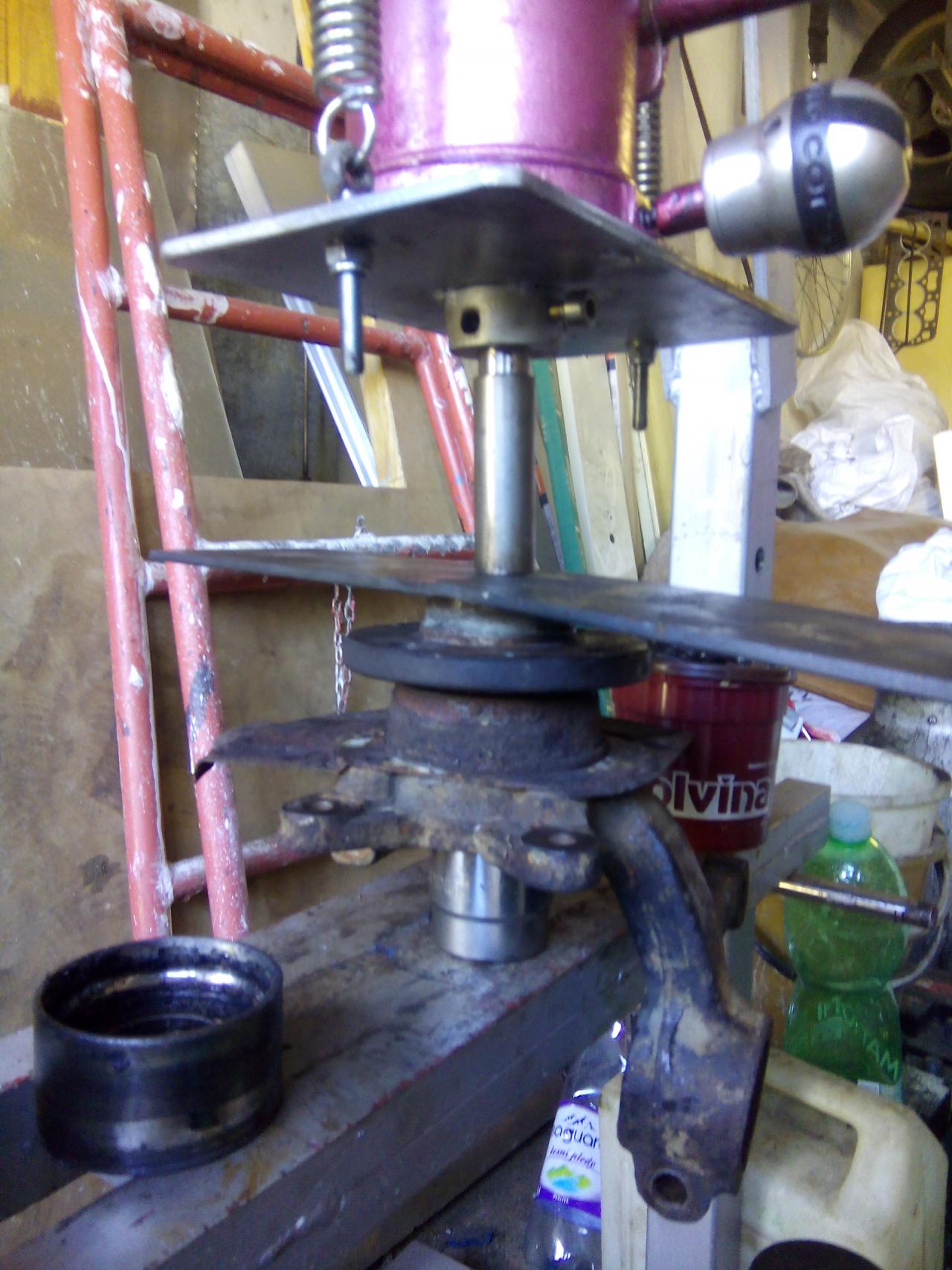 dále vycvaknem zajištovací ségrovku a vylisujem ložisko ven vnitřek těhlice