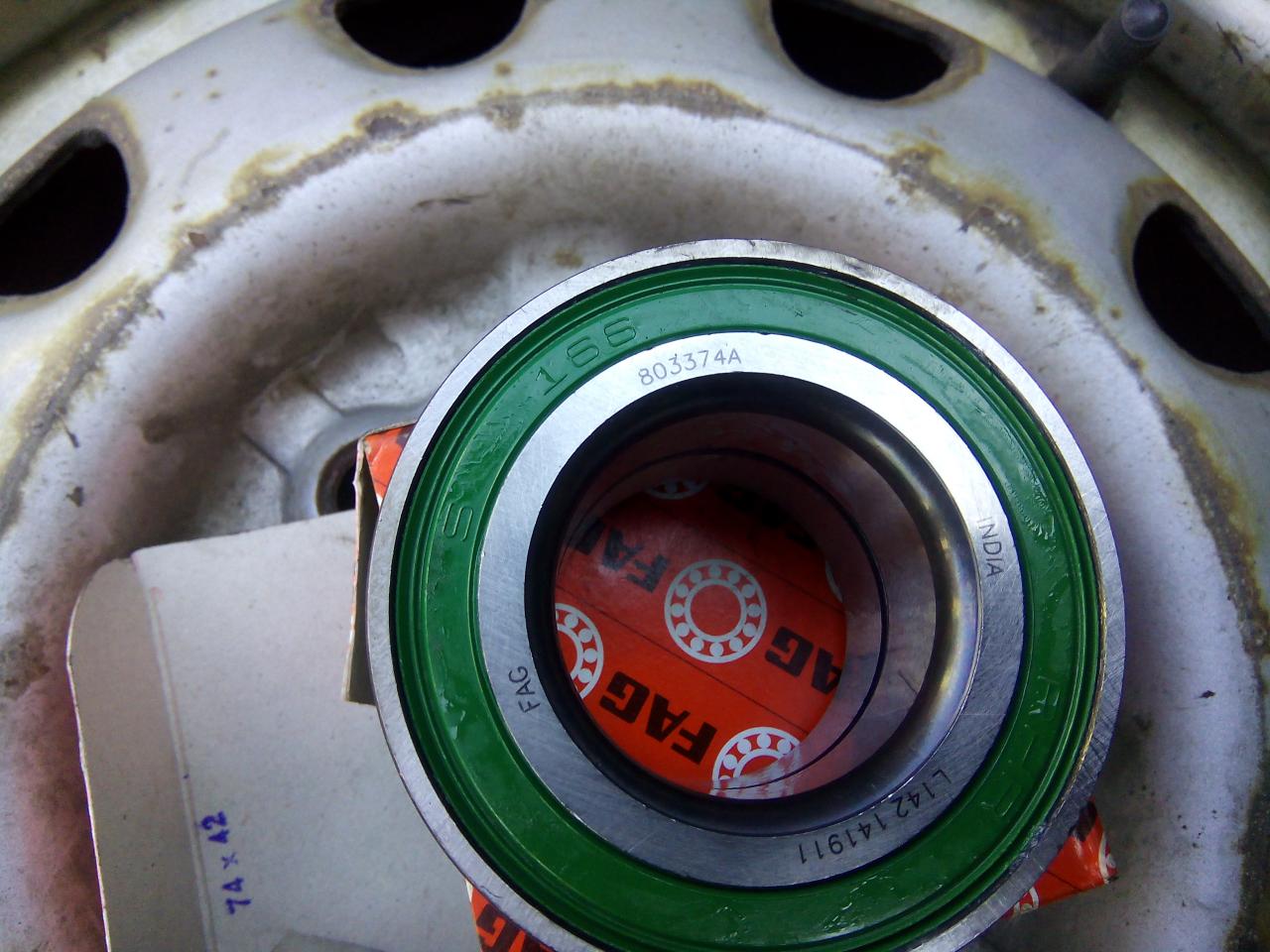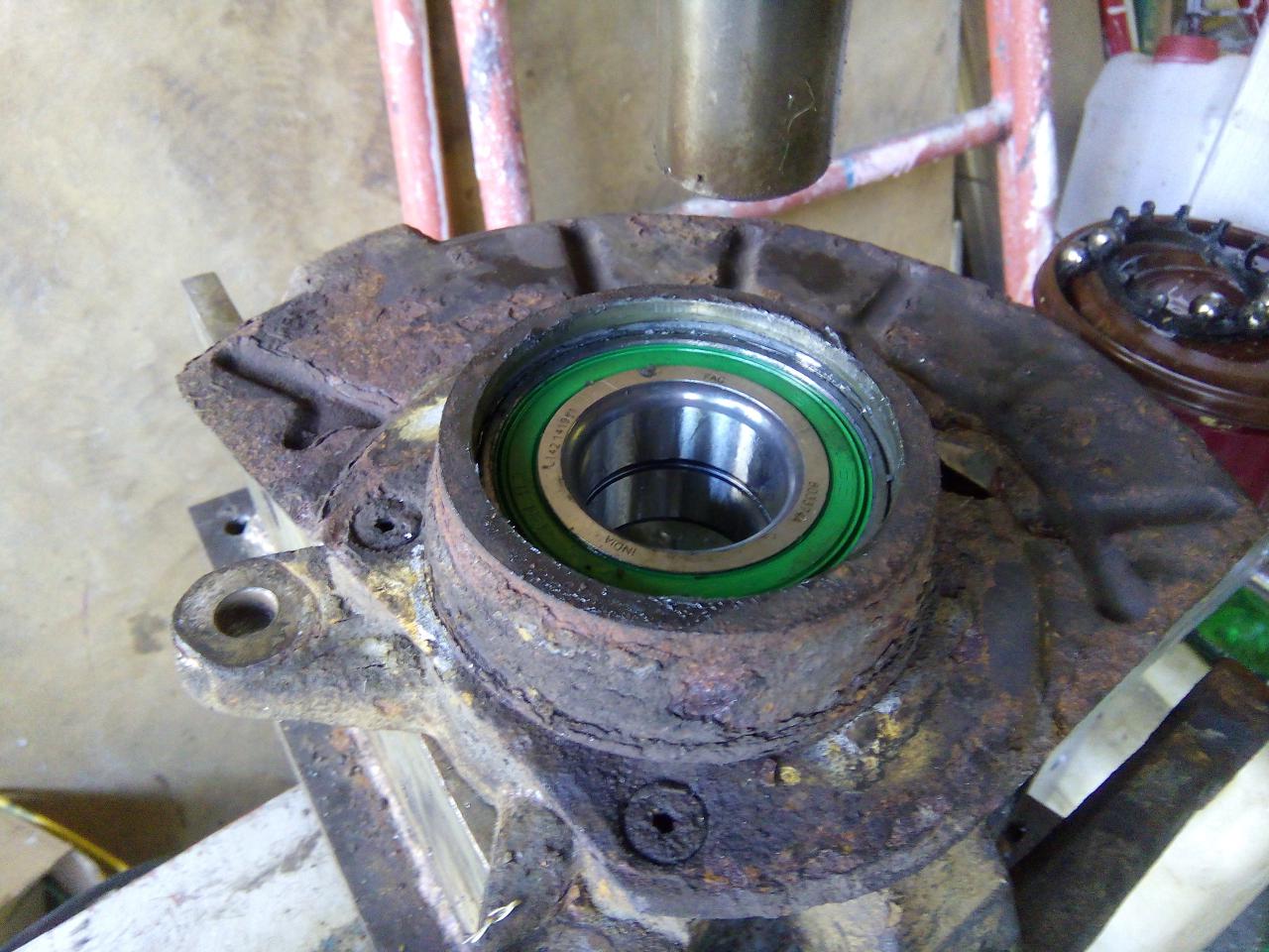 ted je třeba do ložiska nalisovat náboj -ložisko si zevnitř máznem vazelínou poté si střed ložiska podložíme :pozor: já to dělám ořechem z velké gola sady a pak si očištěný a namazaný náboj nalisujem do ložiska -pokud budete náboj lisovat napřímo bez podložení opět riskujete poškození ložiska a výrazné zkrácení jeho životnosti :pozor: