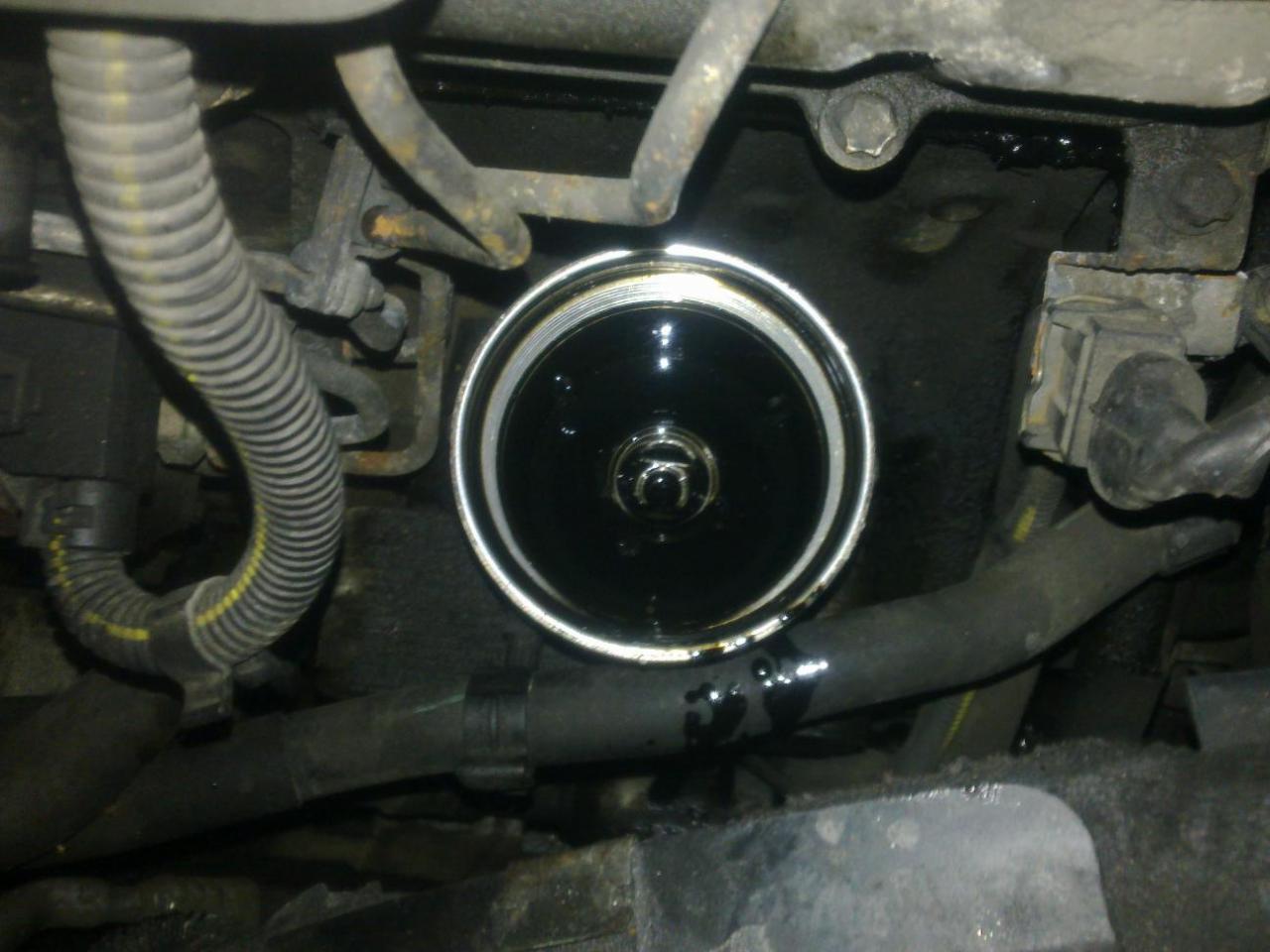 ted mrknem jestli už vytekl všechen starý olej pokud ano našroubujem a utáhnem zpět zátku na vaně motoru