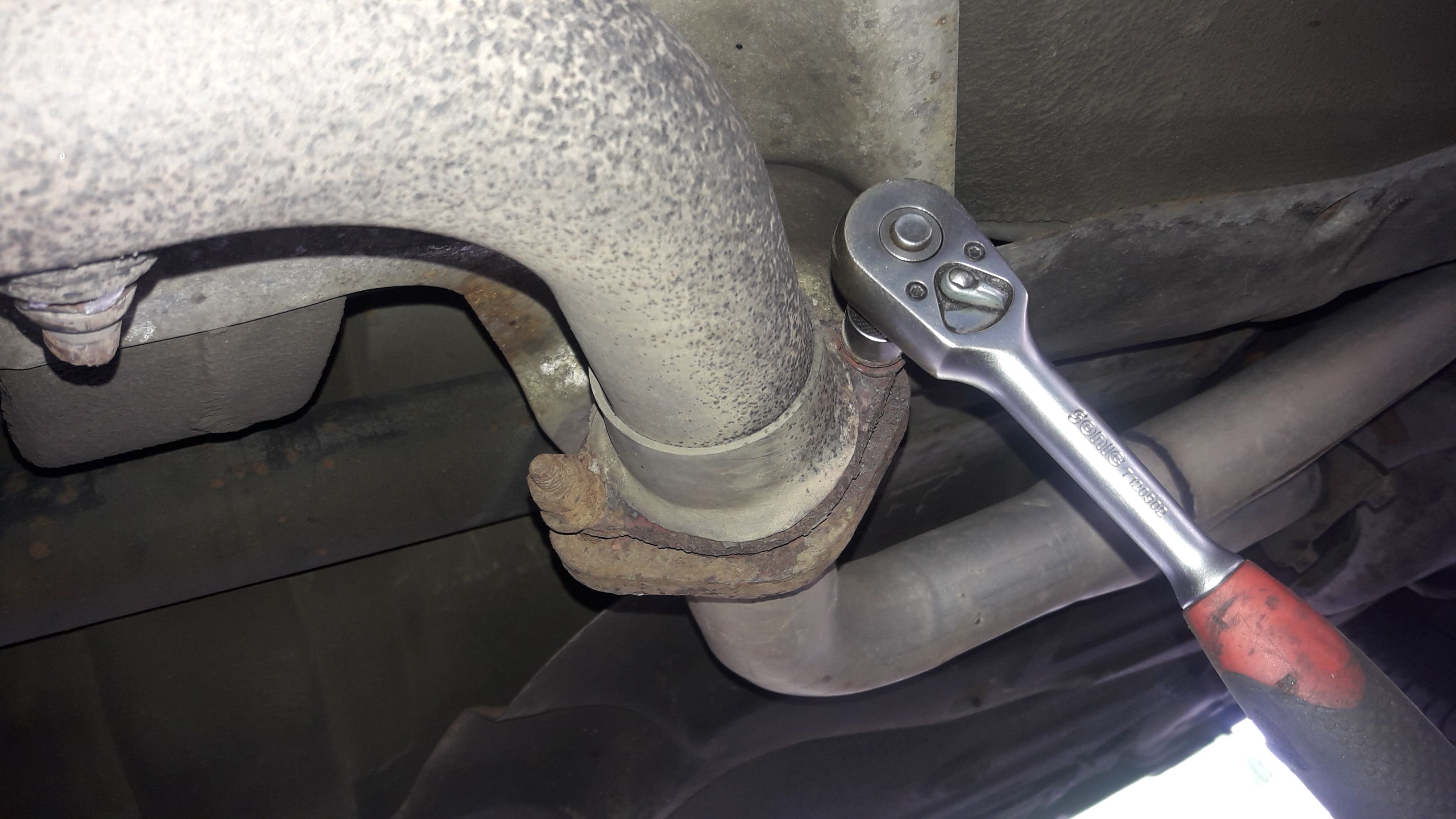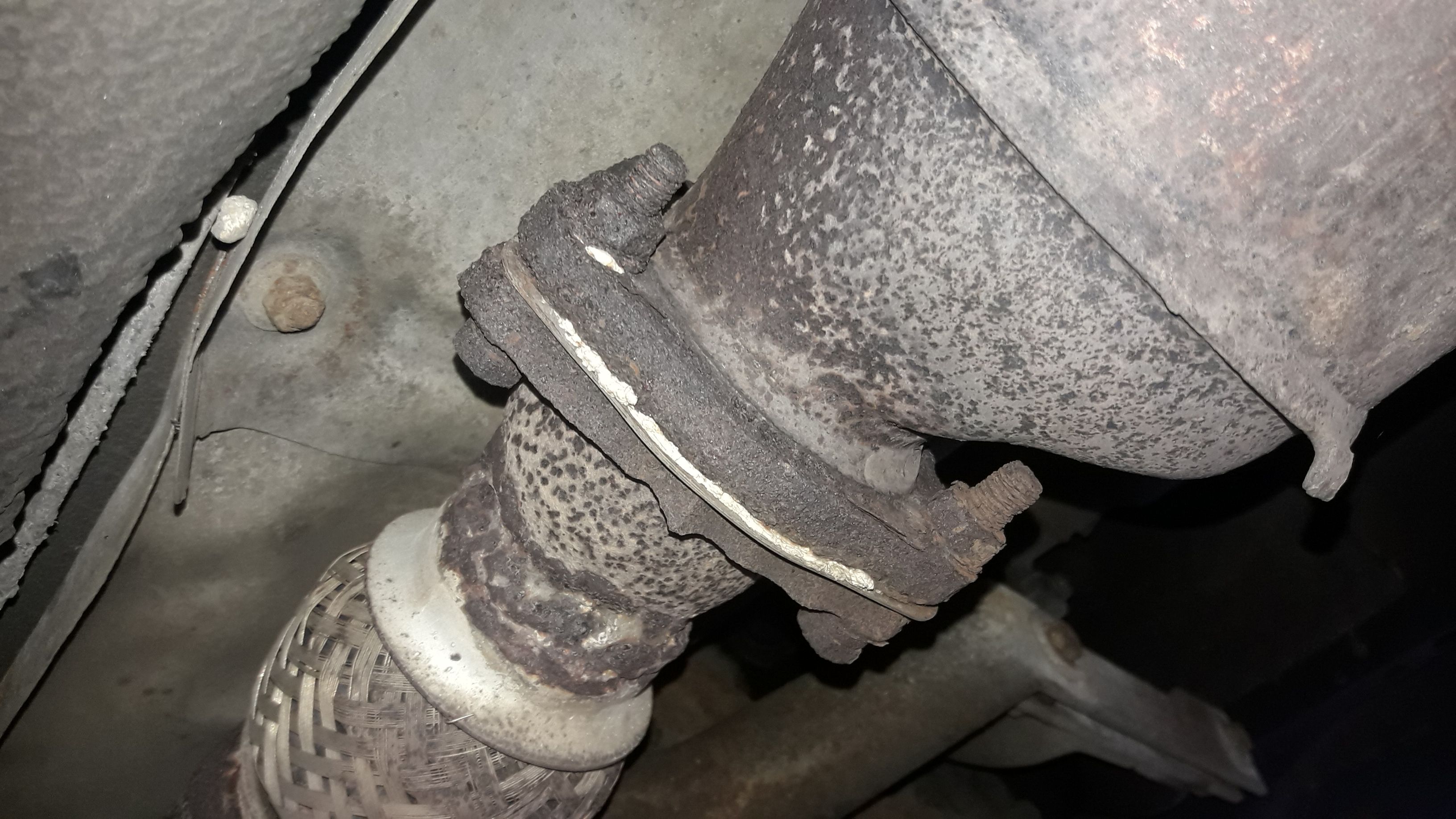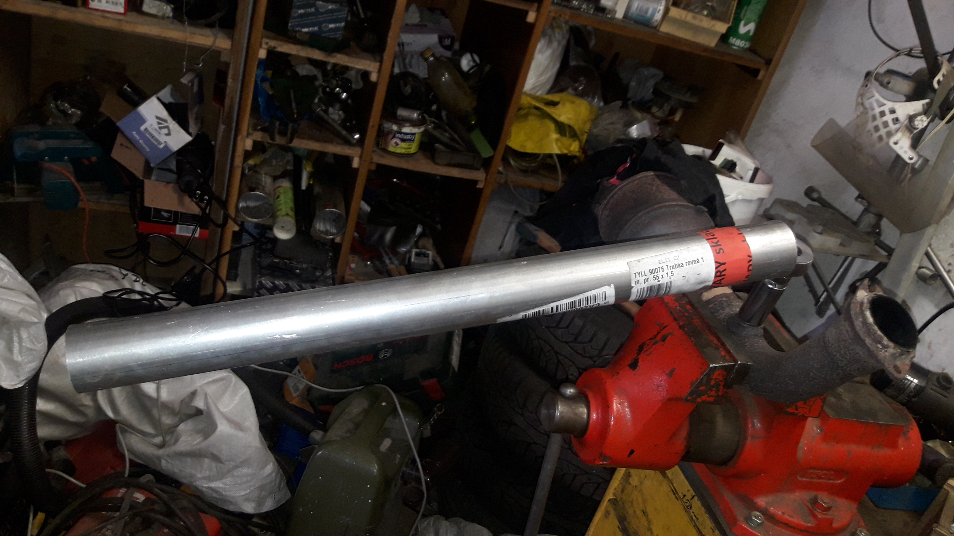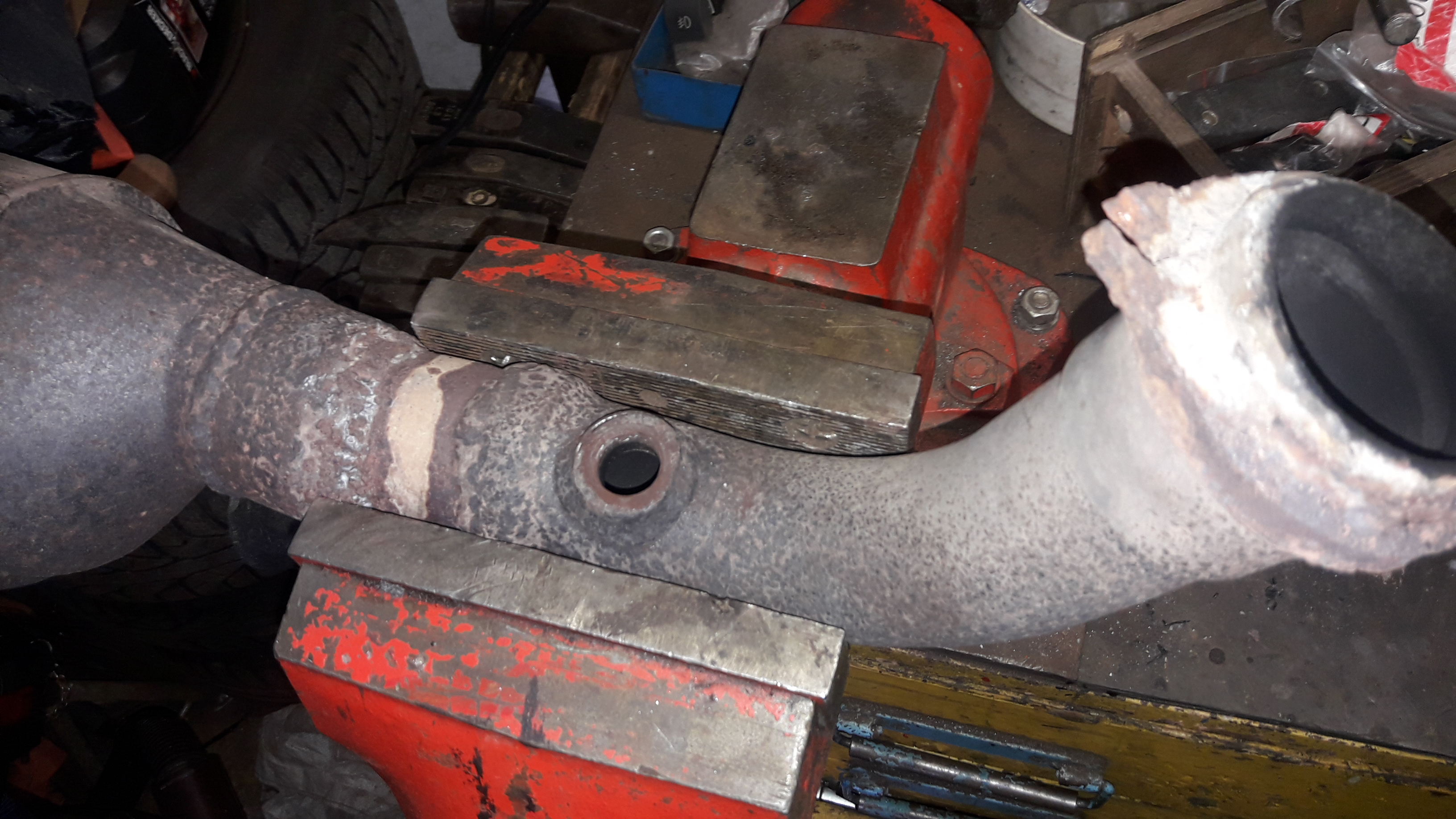ta první šla ven celkem bez problémů ta druhá ven normální cestou nešla demontujem výfukové potrubí vemem ho do svěráku ted mužem se to pokusit ohřát a vytočit