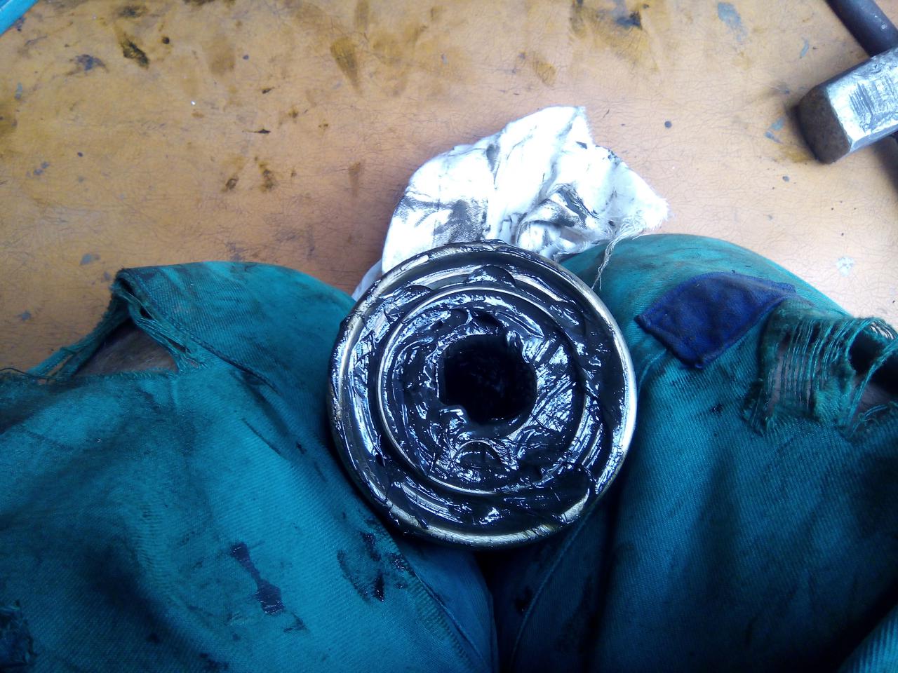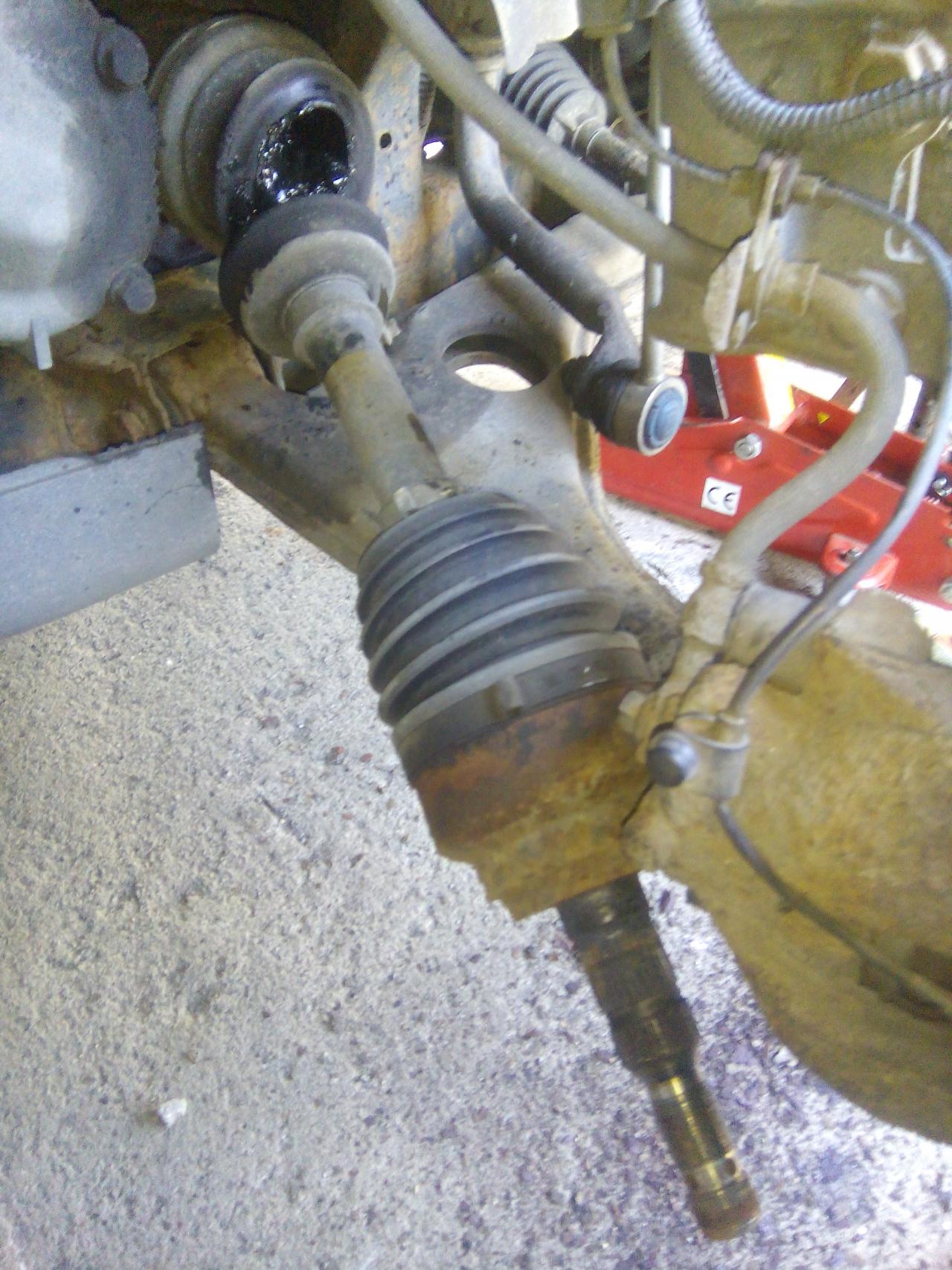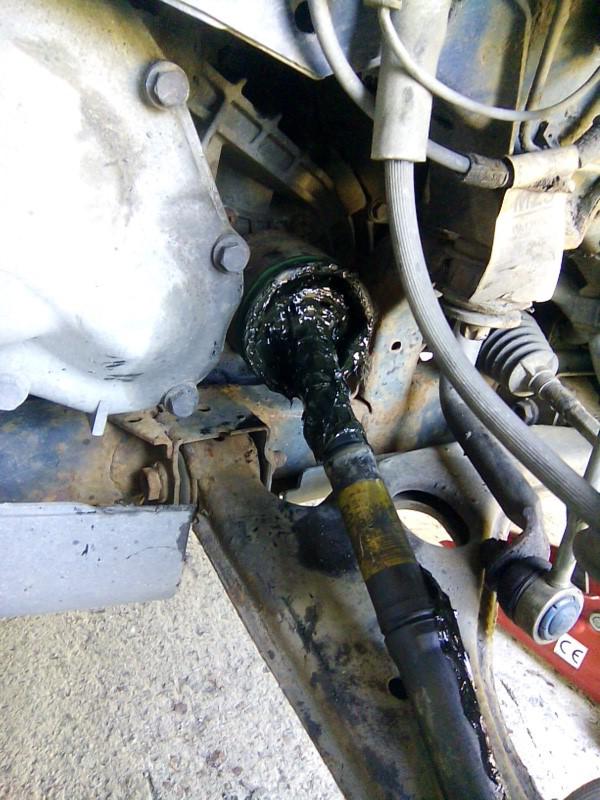 poté vemem homokloub a pokud zjistíme že v něm je mazivo nevalné kvality -hrudkovaté a poloztvrdlé tak homokloub důkladně vymejeme a natlačíme nové mazivo