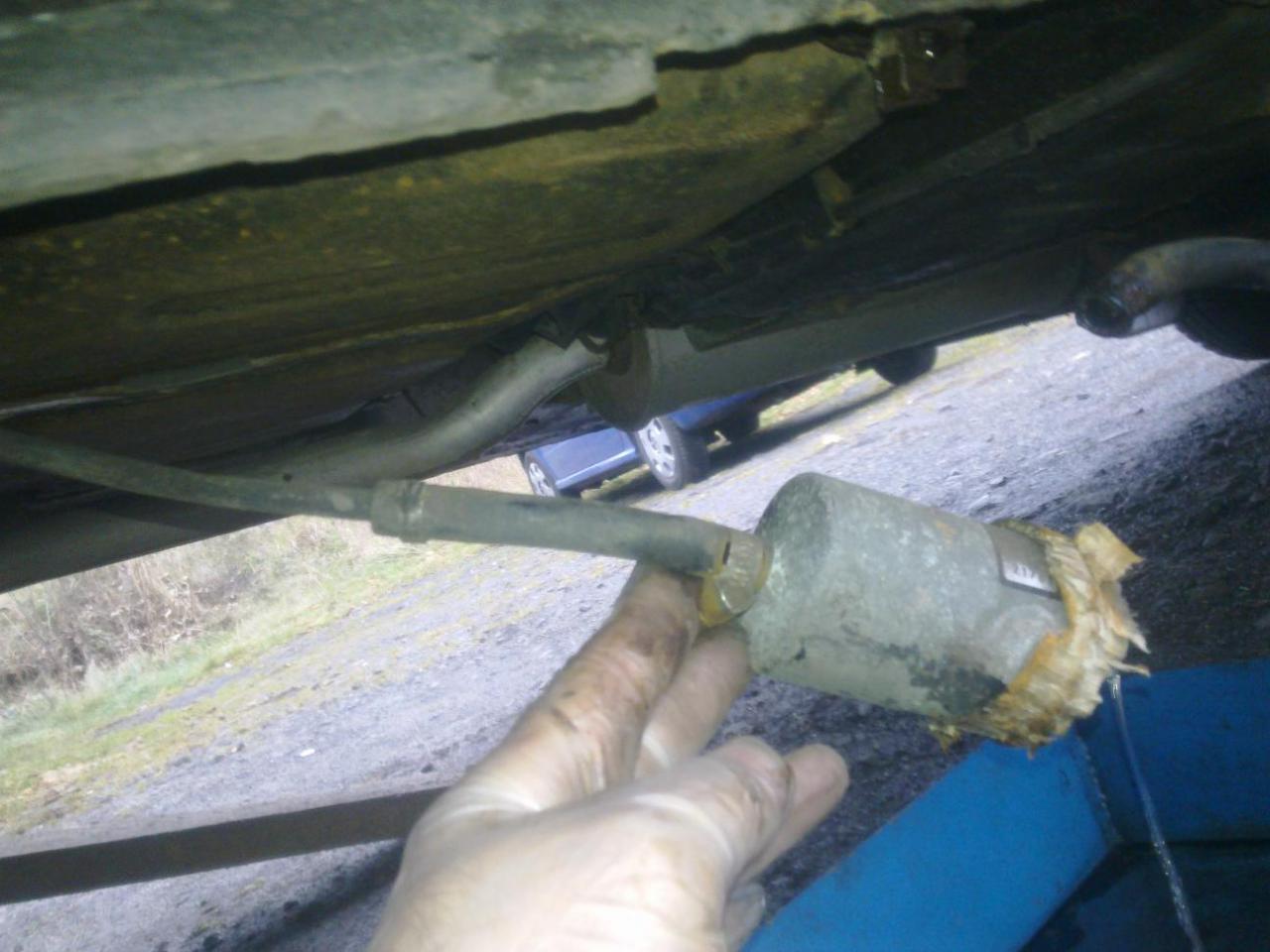poté je dobré si na zem pod filtr dát nákou nádobu at nám po odpojení filtru nebleje benzín všude okolo