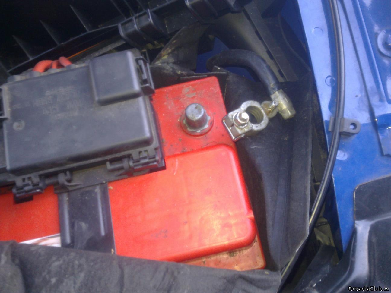dále 13 klíčem odpojíme hlavní plusovej přívod ke startéru