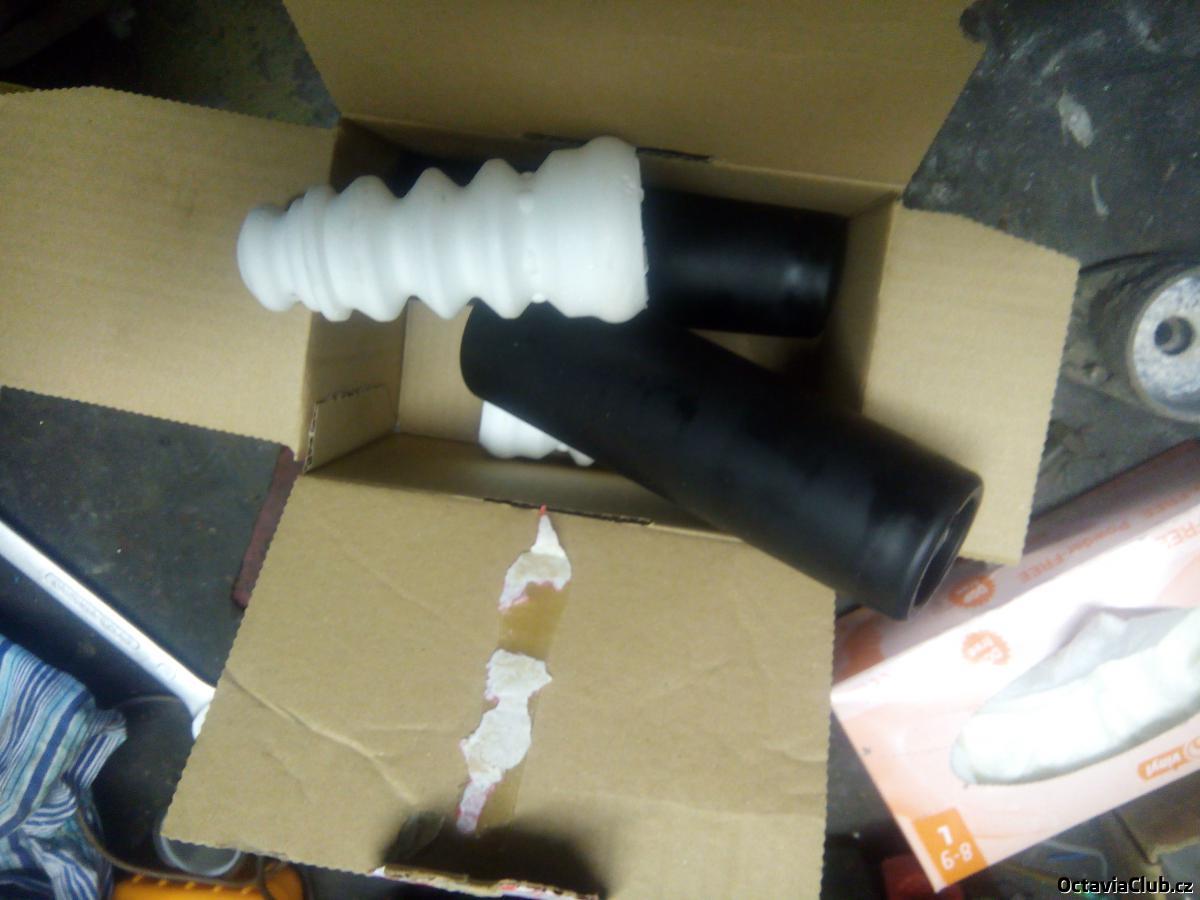 připravíme si nový tlumič a pokud máme tak i novou krytku a pěnový doraz,krytku a doraz secvakneme do sebe a nacvaknem do horního uložení tlumiče