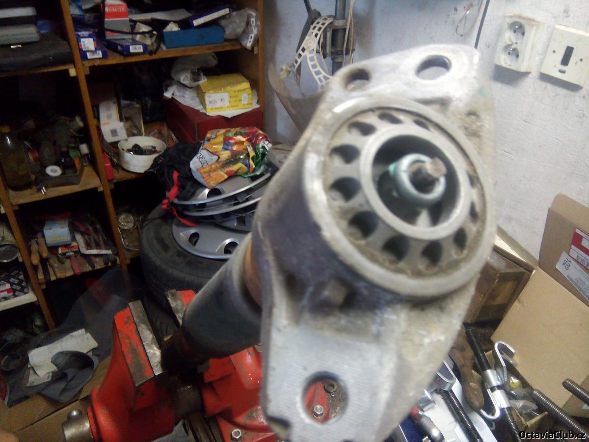 ted se zaměříme na výměnu tlumiče,z toho starého tlumiče vycvaknem krytku a povolíme matku co drží to vrchní uložení a to sklepnem dolů