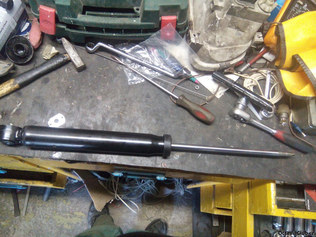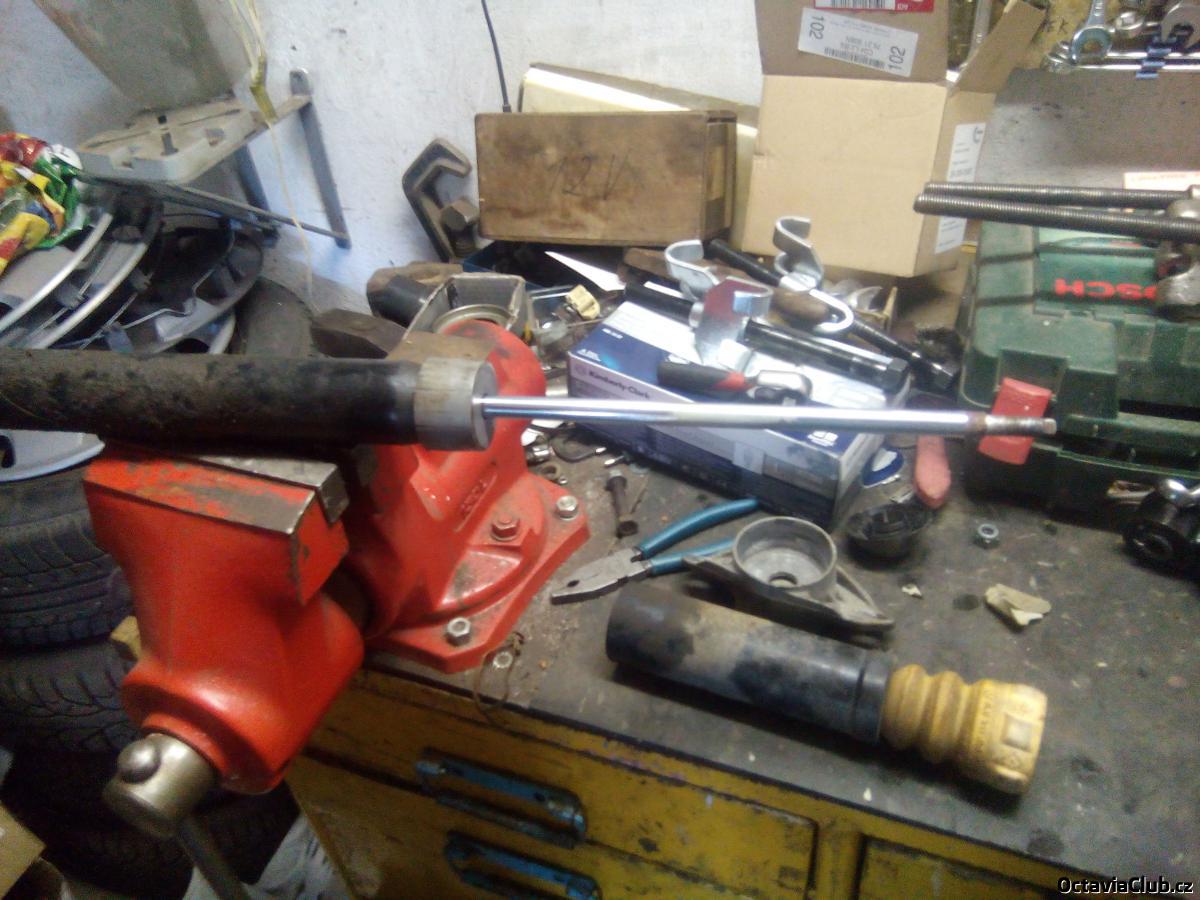 vemem nový tlumič osadíme krytkou a gumovým dorazem a nandáme to vrchní uložení,to utáhnem a nacvaknem krytku