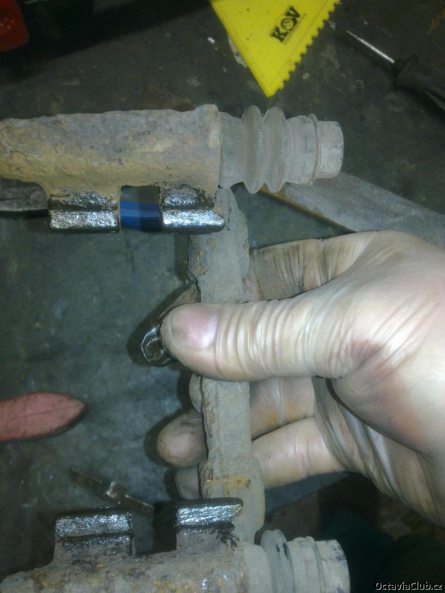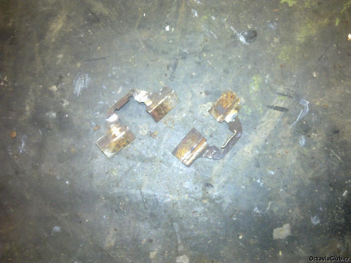 dále z třmenu vycvaknem ty vymezovací plíšky,očistíme dosedací plochy třmenu a očistíme i ty distanční plíšky -pokud máme nové dáme nové a vše vemem z lehka mazivem já použil grafitovou vazelínu
