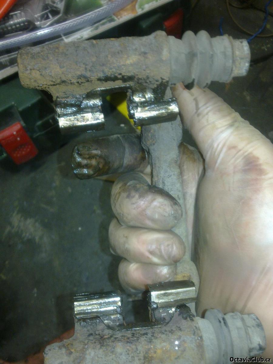ted si vemem samotný třmen vytáhneme z něj plovoucí šrouby očistíme,pokud je třeba dáme nové manžety znova máznem vazelínou a složíme