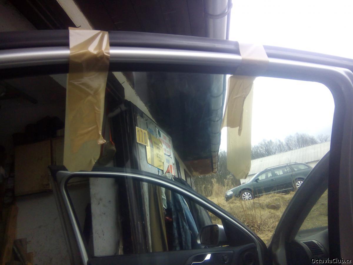 ted si odjištěné okno vytáhneme nahoru a zajistíme tak aby nepadlo do dveří já to zalepil lepenkou na balíky