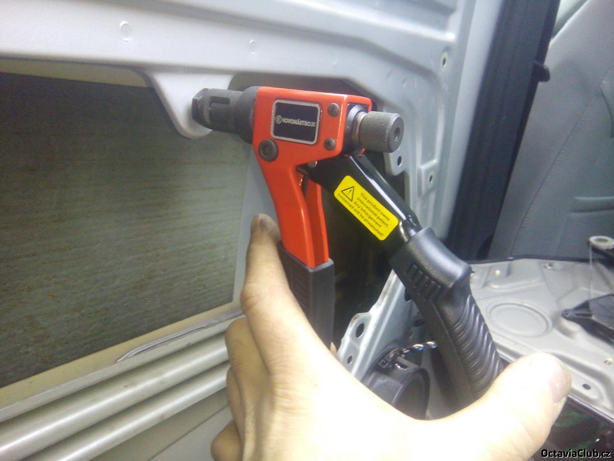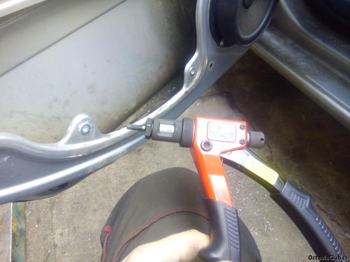 ted je třeba odvrtat 7 nýtů jenž drží samotnej plech -dejte pozor at to nepopletete je na ten plech přinejtovaná i samotná stahovačka oken