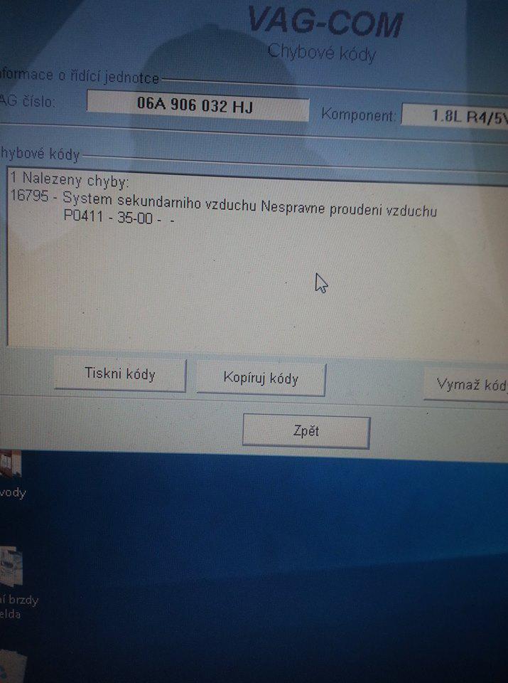 chybu způsobuje vývěva sekundárního vzduchu,která je uchycena ze spoda motoru vedle servočerpadla vývěvu je třeba demontovat a zjistit jestli chodí,