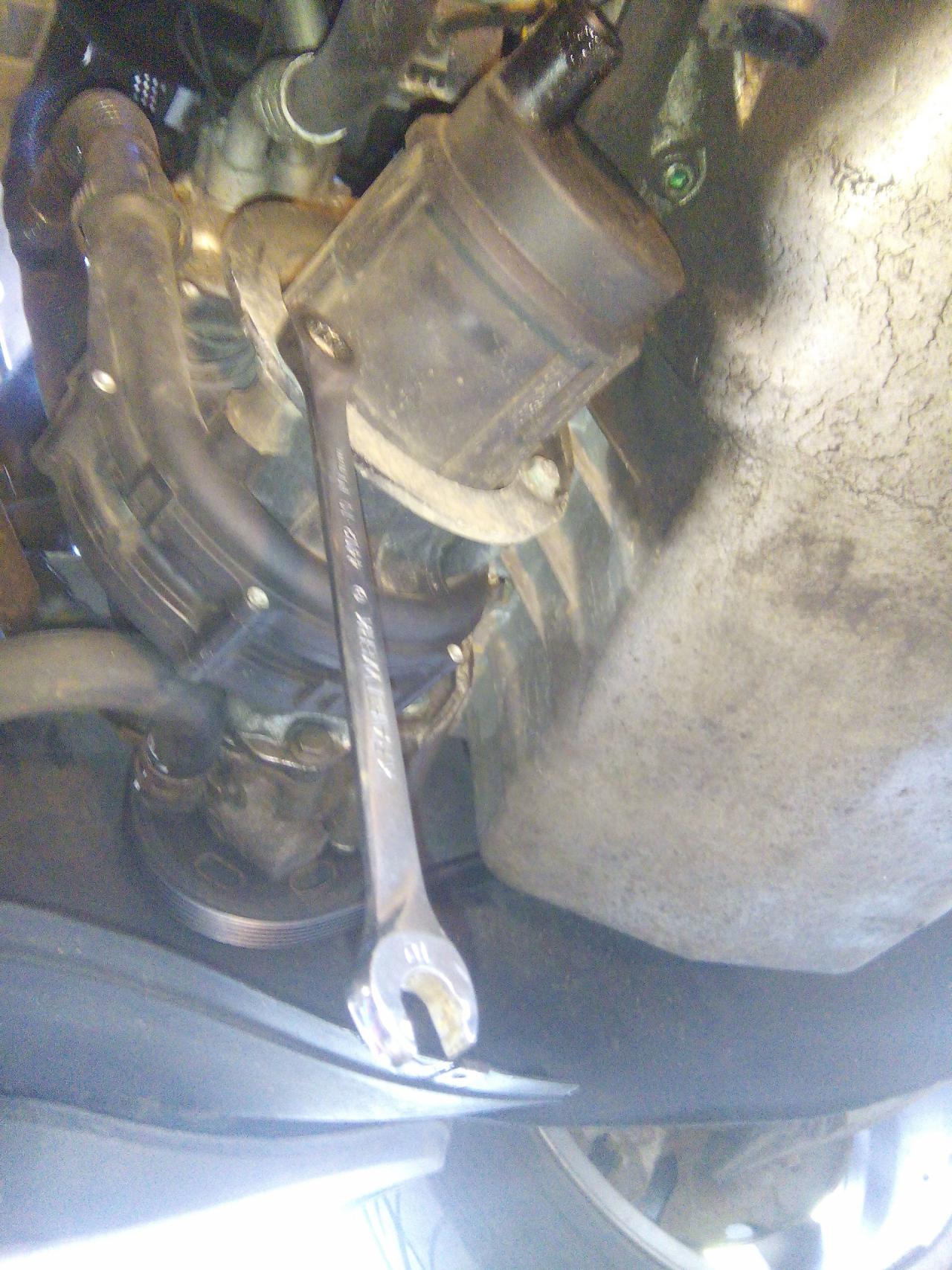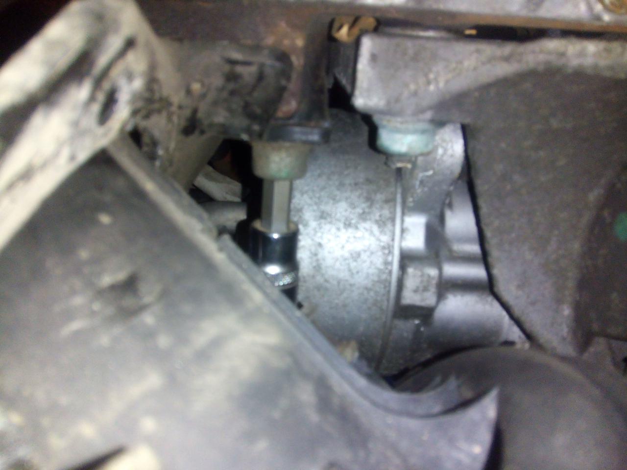 sundáme plast pod motorem z vývěvy odpojíme elektrický konektor dále povolíme 3 matičky co drží v držáku samotnou vývěvu ted z vývěvy vycvaknem obě hadice dále je třeba povolit oba spodní imbusy jenž drží celej ten železnej držák vývěvy poté si držák kapku vyhnem -sundat nejde musel by se povolit ještě třetí imbus a vzhledem k jeho umístění se mi do toho jít nechtělo - a vývěva de vytáhnout ven no a hned sem viděl kde je problém,