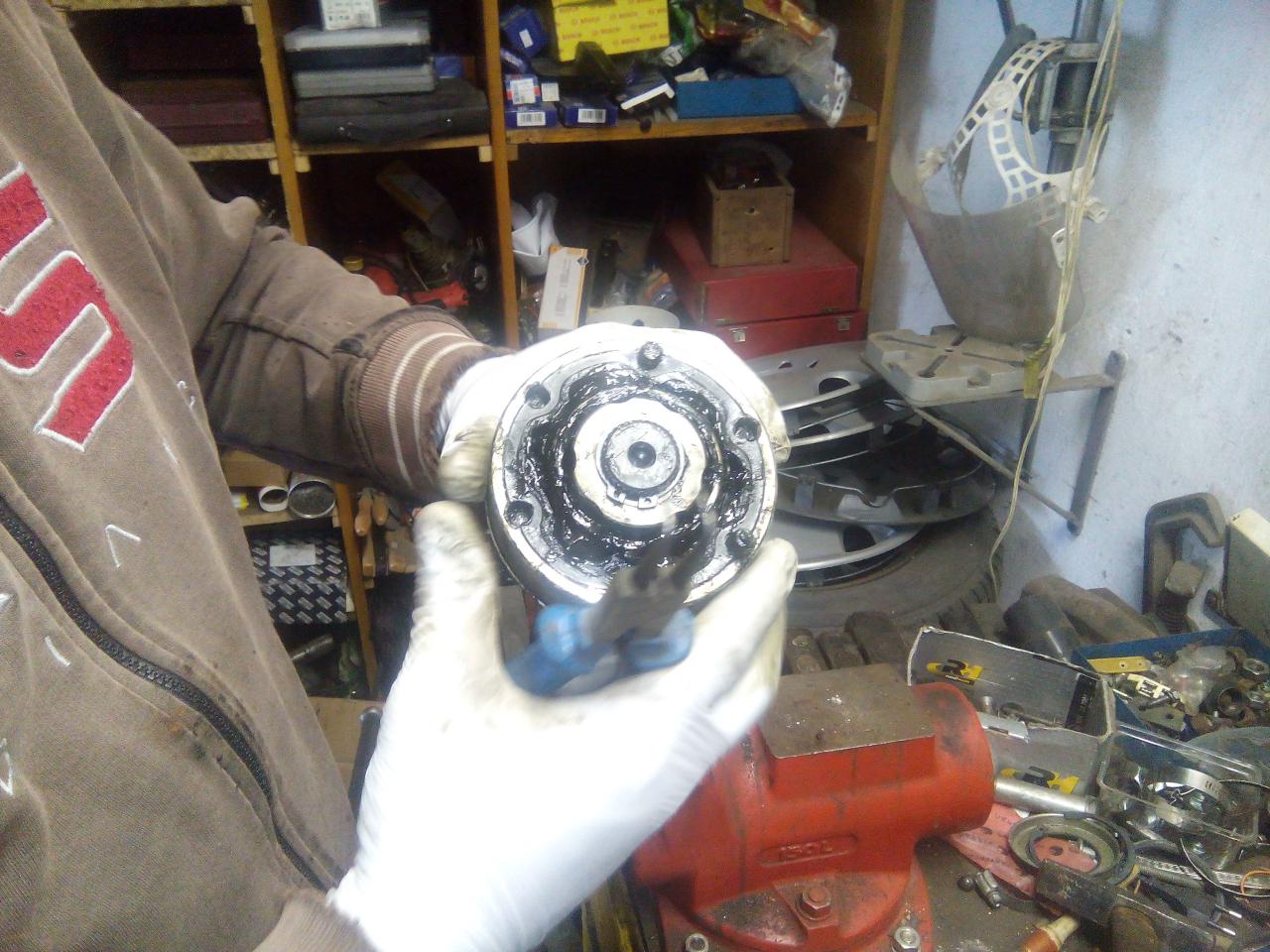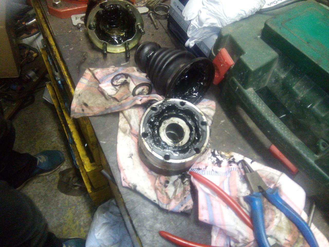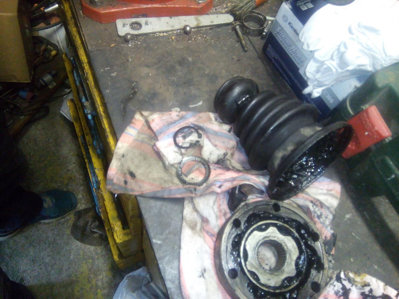 poloosu očistíme, dáme nový kloub,máznem vazelínou a zajistíme ségrovkou ted je třeba vrátit poloosu do auta,utáhnem jí u převodovky,nandáme jí do těhlice,nandáme spodní čep do ramene a utáhneme,uchytíme krycí plast motoru,