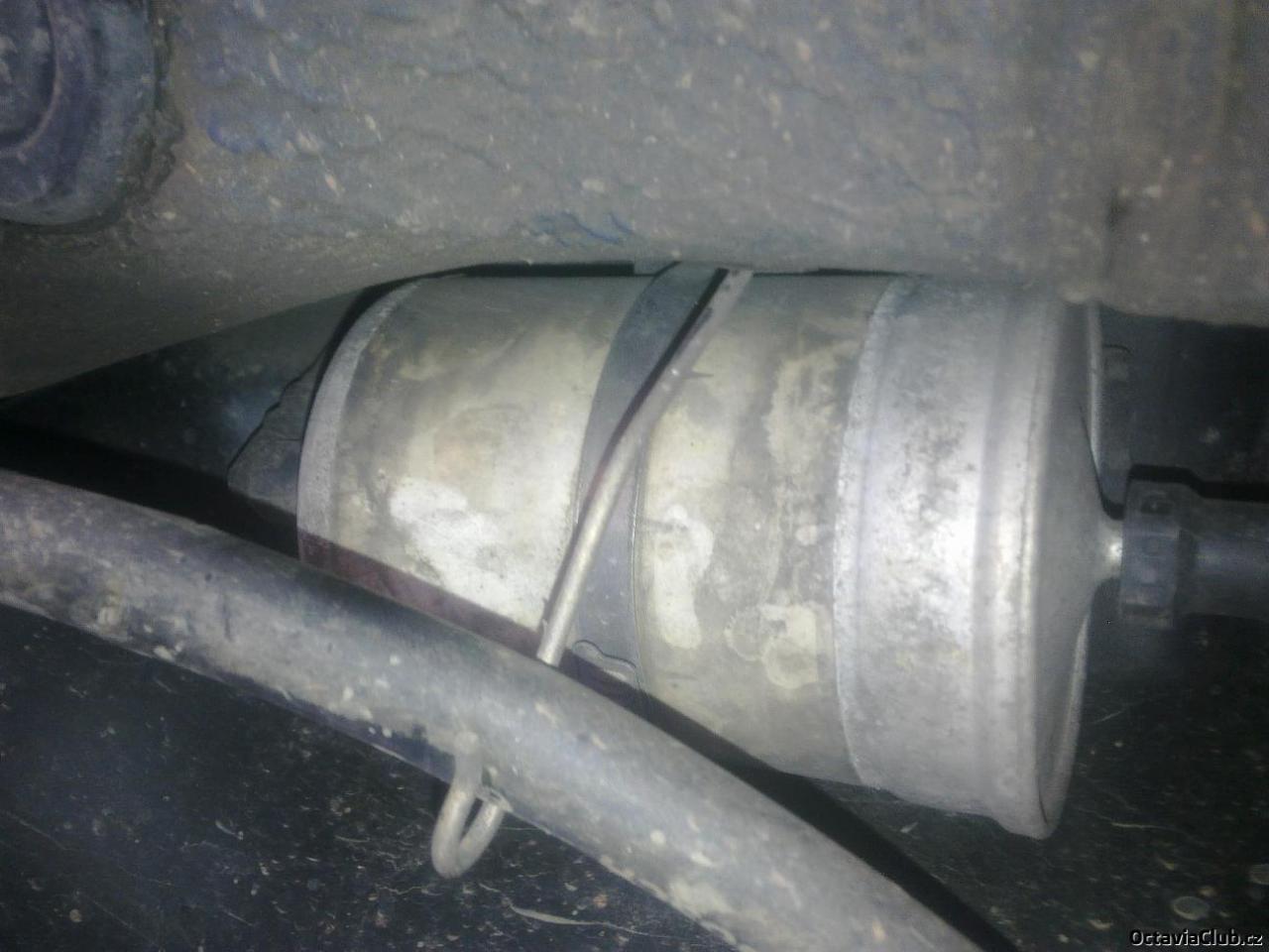 najedem si na rampu,nájezdy či zvedneme pravou zadní stranu auta tak aby sme se pod ní vešli pak si vyháknem s držáku bovden ruční brzdy pro lepší přístup k filtru dále pokud to pude povolíme objímku filtru pokud ne holt jí odstřihnem poté je dobré si na zem pod filtr dát nákou nádobu at nám po odpojení filtru nebleje benzín všude okolo ted je potřeba vycvaknout sponu na výstupní straně filtru a stáhnout hadici