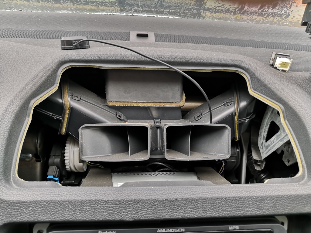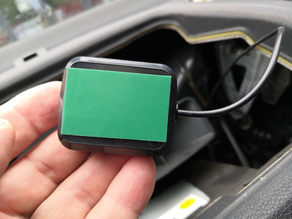 Vemte náhradu GPS anténu: 297103 FAKRA9 – AGP-103 GPS vnitřní anténa FAKRA 90°konektor Přilepte na modul oboustranou lepenku. Nalepte ji na horní část modulu. Protáhněte kabel kolem průduchu ventilace. Přilepte modul ze spoda na palubovku na rovný povrch, až za pozici kaslíku s výduchy. Modul musí být nalepen směrem vzhůru. Pokud ho nalepíte vzhůru nohama je to špatně a nebude snímat satelity.