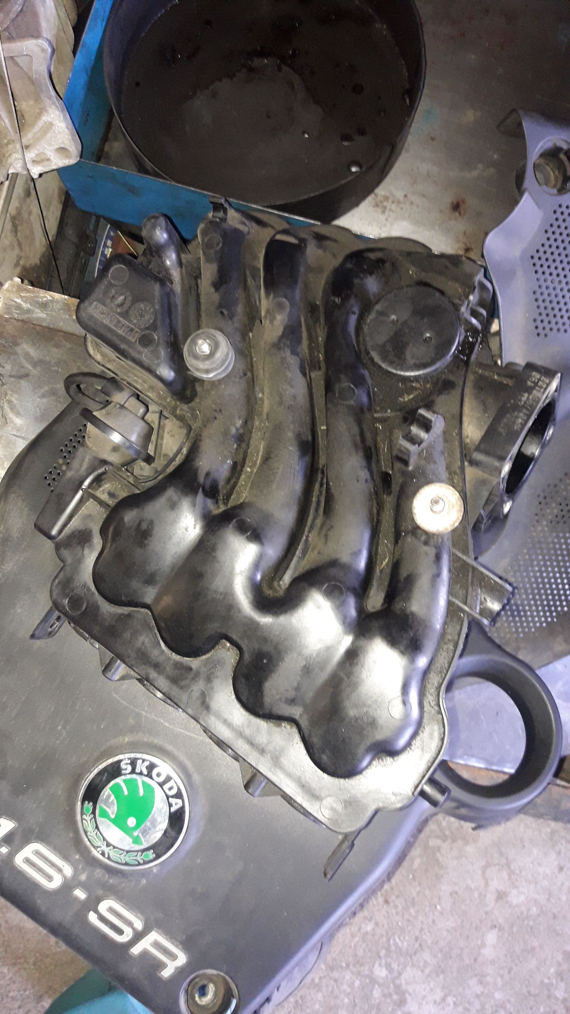 ted je třeba sundat to plastový sání,z předu povolíme oba torxi pak vycvaknem oba ty umělohmotný trny viz foto: ted povolíme oba imbus šrouby co drží to sání ze zadu,z pravý strany tam neni vidět a je tam naprd přístup z tý levý do de v pohodě dále odpojíme hadici podtlaku viz foto: a odpojíme od elektriky a podtlaku regulaci výřivých klapek ted si z předu sání povycvaknem obě plastový pojistky a povytáhnem si to ven abychom to dostali ven je třeba odpojit ukostřovací měděnej pásek já to vyloupl z toho plastu i se závitovou vložkou sání dáme stranou ted je třeba sundat víko ventilů,vycvaknem vrchní kryt rozvodú