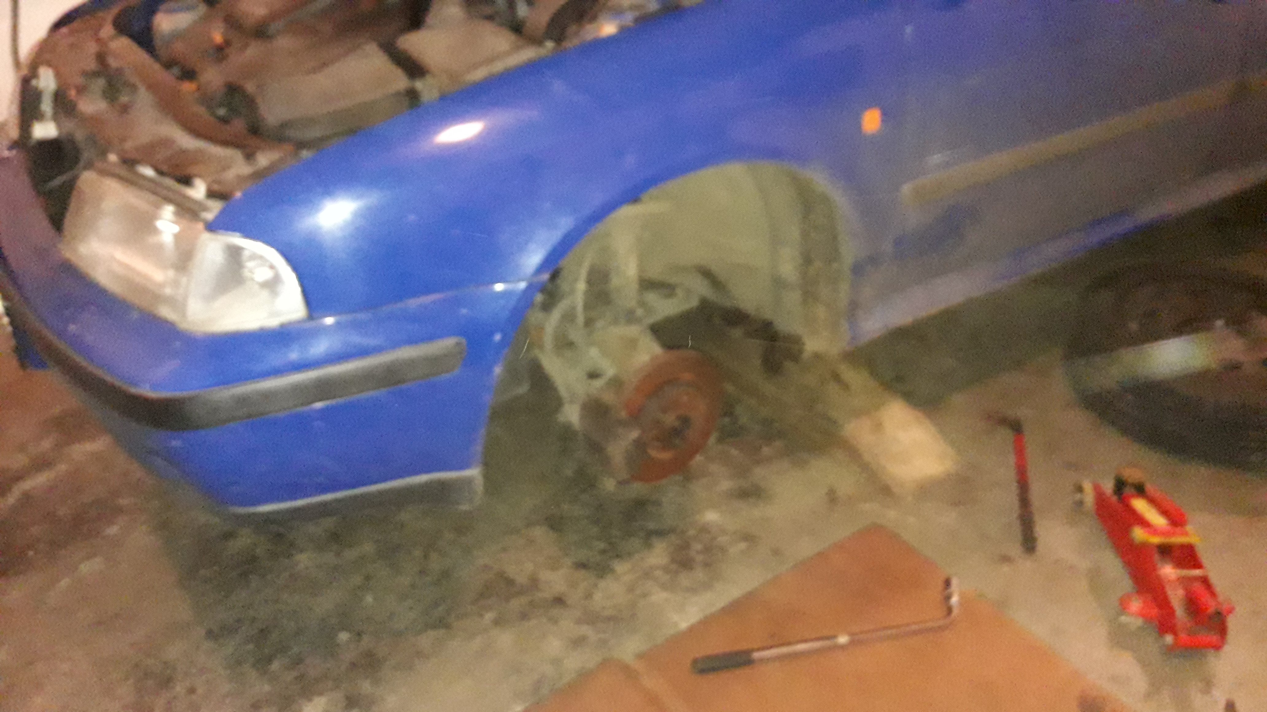 povolíme na každý straně dva šrouby jeden nahoře druhej dole dále na levý a pravý straně nahoře u blatníku povolit dva šrouby ted tu chladičovou stěnu naklopíme na sebe a na něco položíme já použil nájezd a pneumatiku