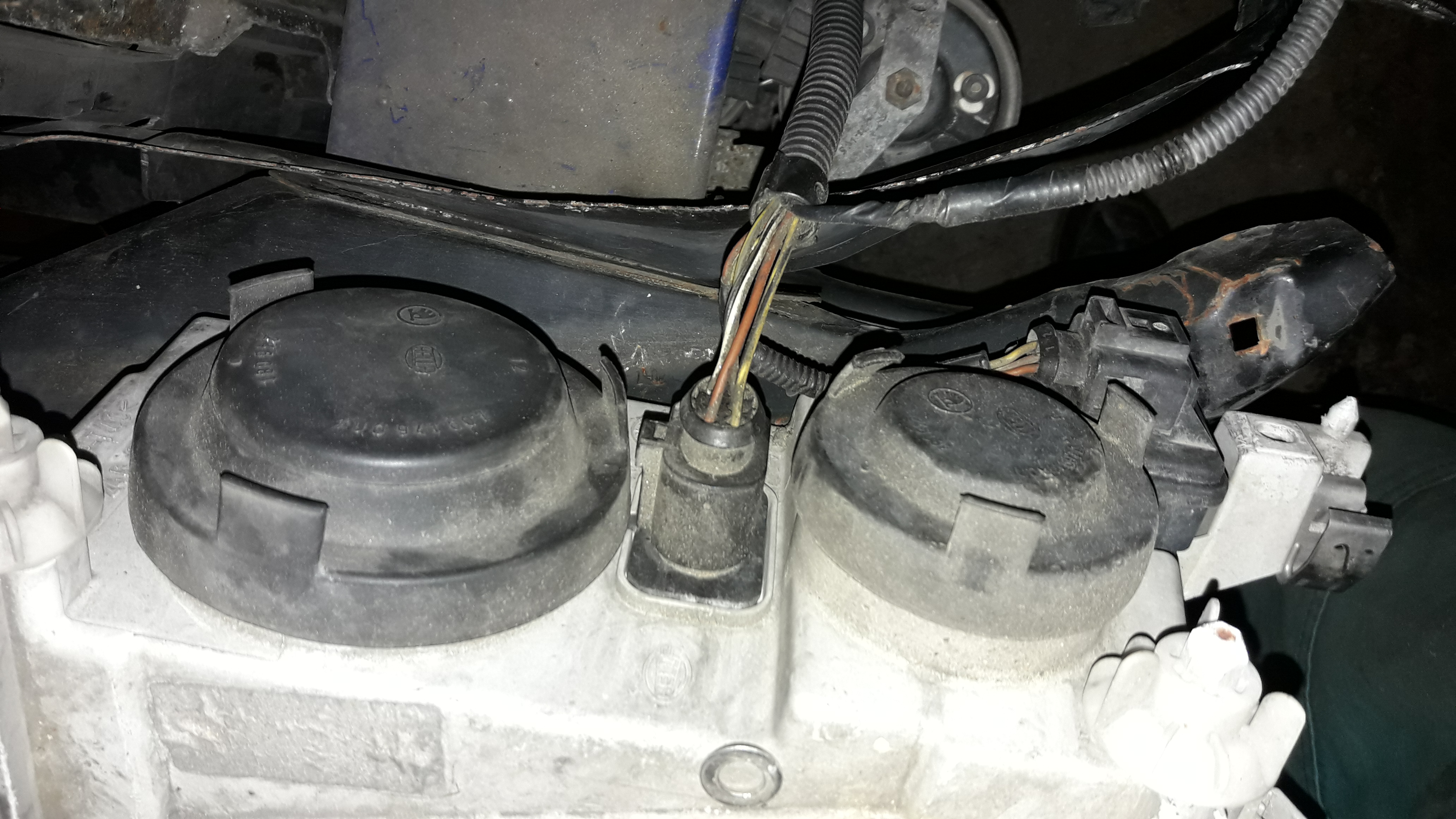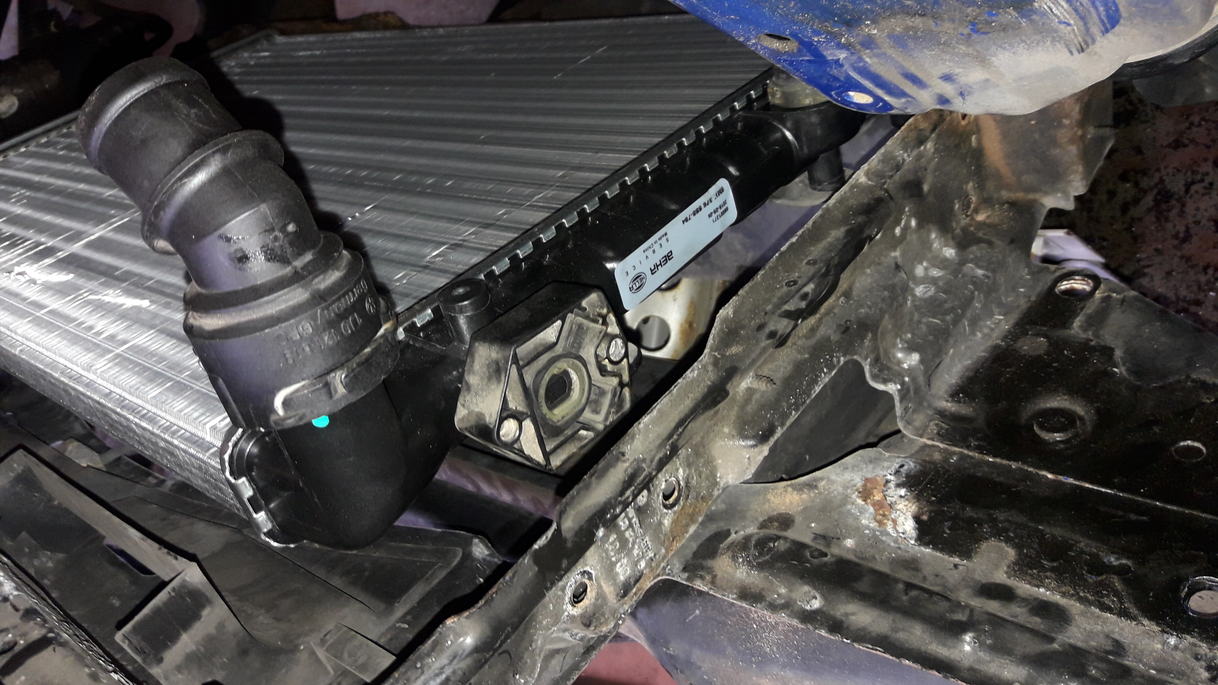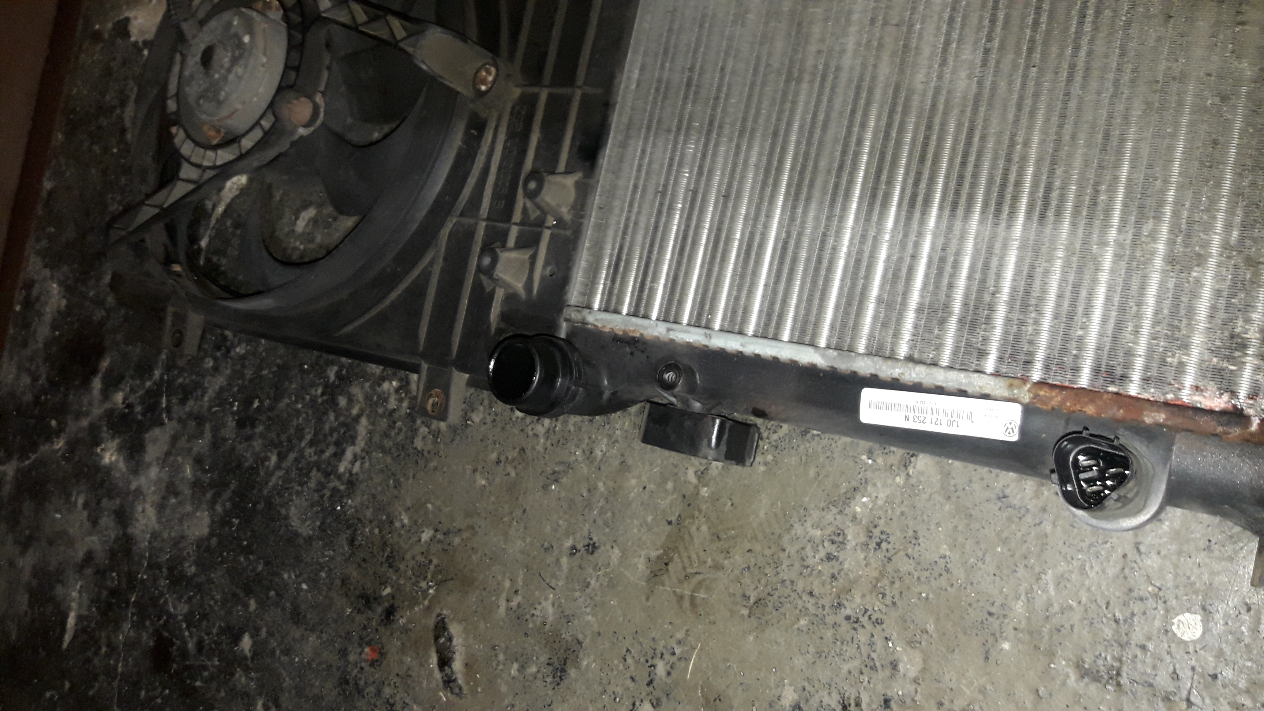 z nového chladiče demontujem tu záslepku a namontujem spínač ted si ze starého chladiče stáhnem všechny 4 gumový silenty a nandáme na novej chladič ted si novej chladič namontujem do auta: