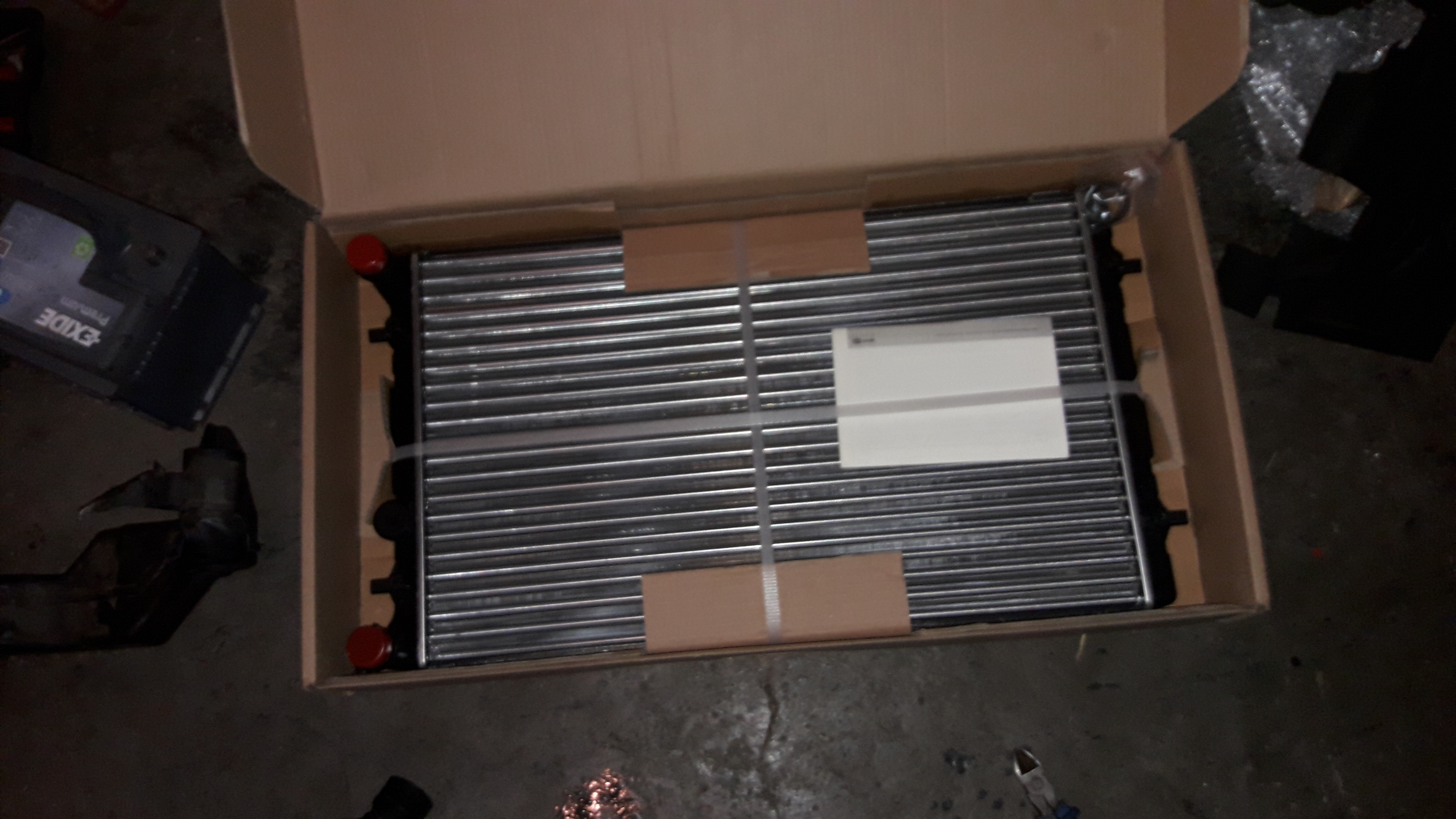 každej silent drží dva šrouby ted si z chladiče vody odšroubujem chladič klimy nezapomenem na ukrytý šroub ze spodu u vypouštěcího ventilu ted vyndáme chladič ven připravíme si nový chladič ted musíme ze starýho chladiče na nový přehodit oba výstupy na vrchní a spodní hadici