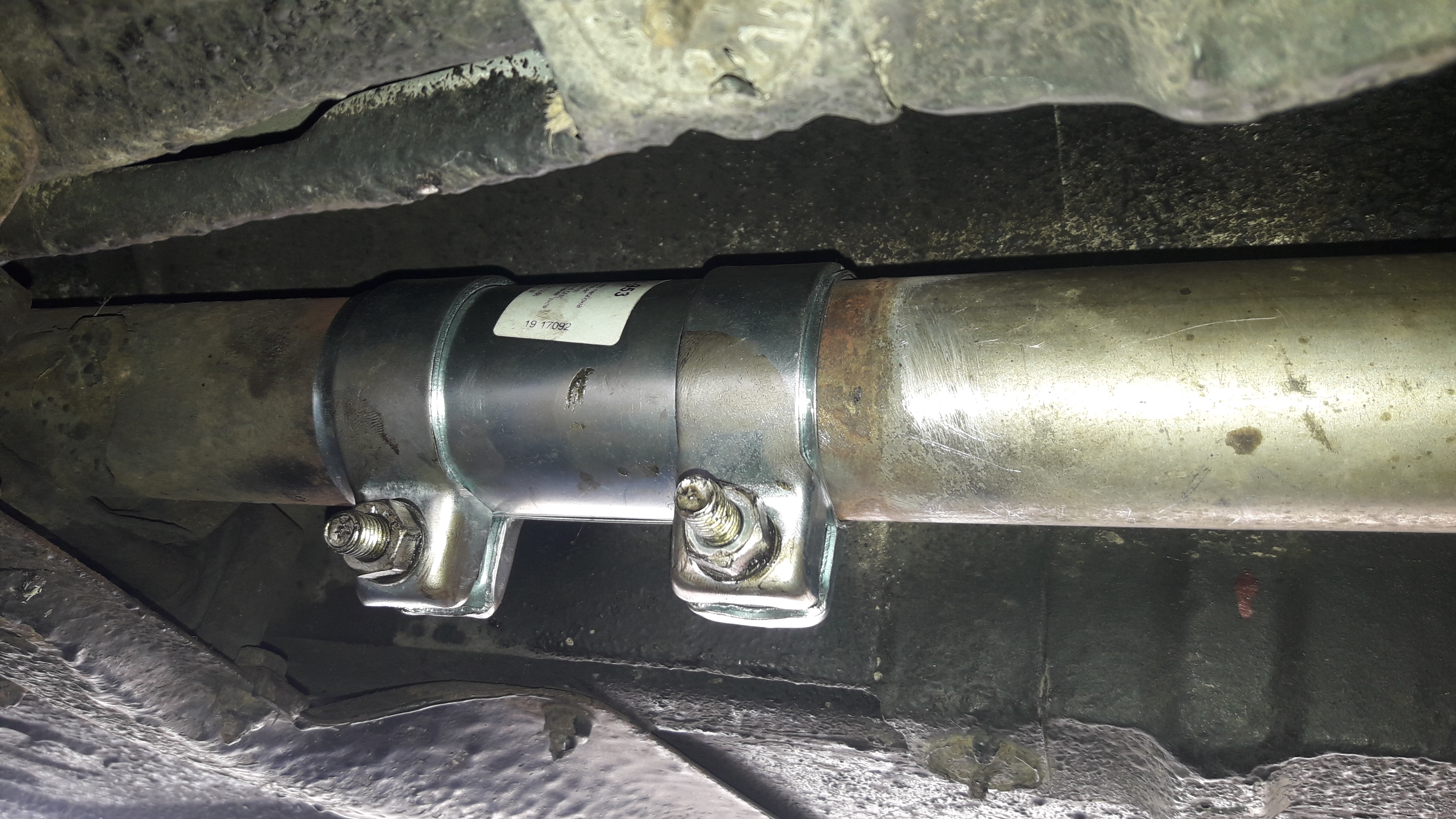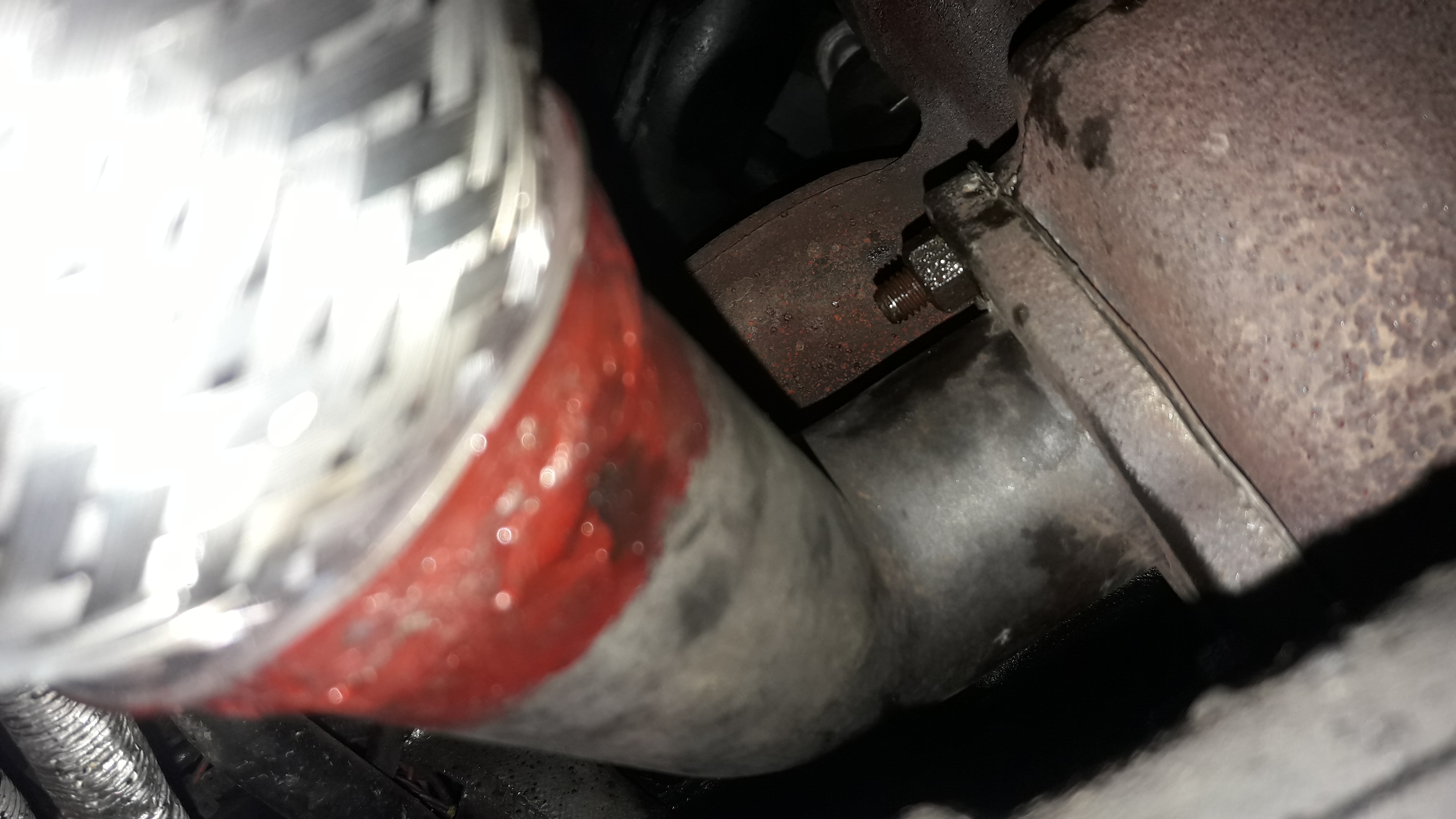 ted je třeba ten kat s novým vlnovcem namontovat do vozu - dotáhnem 3 šrouby na přírubě uchytíme oběma šrouby silent do nápravy - já si před tím závitníkem protáh oba závity