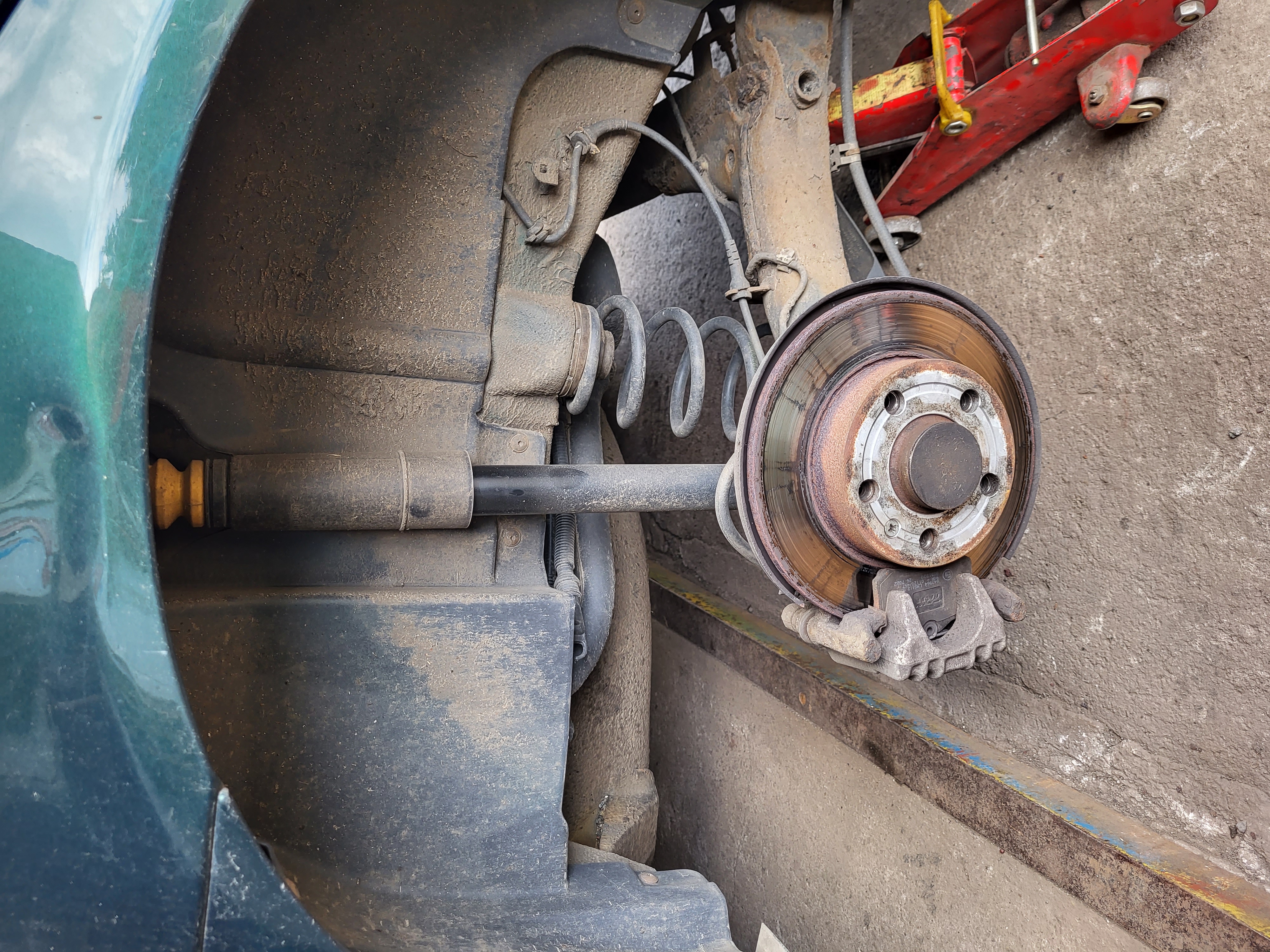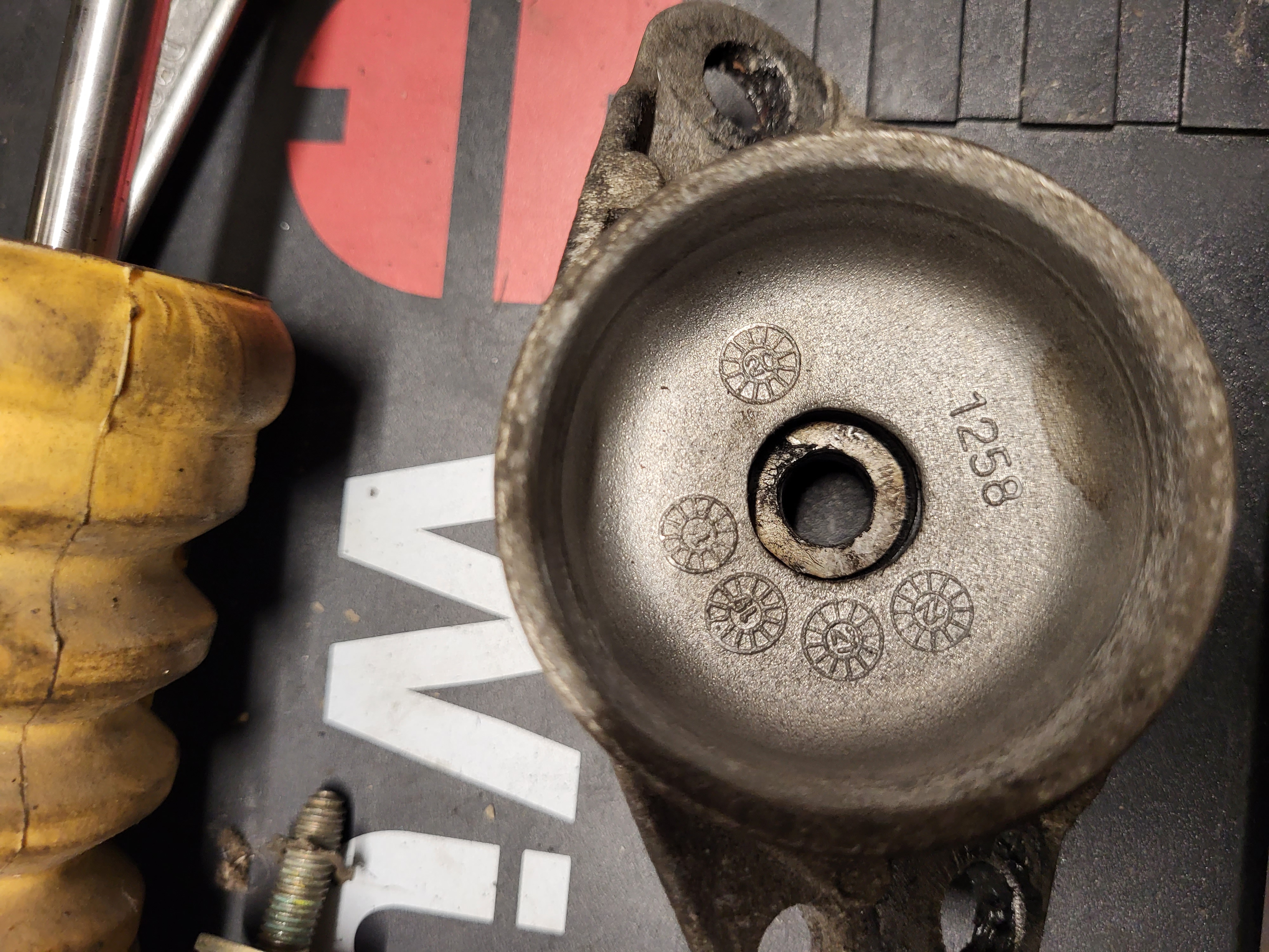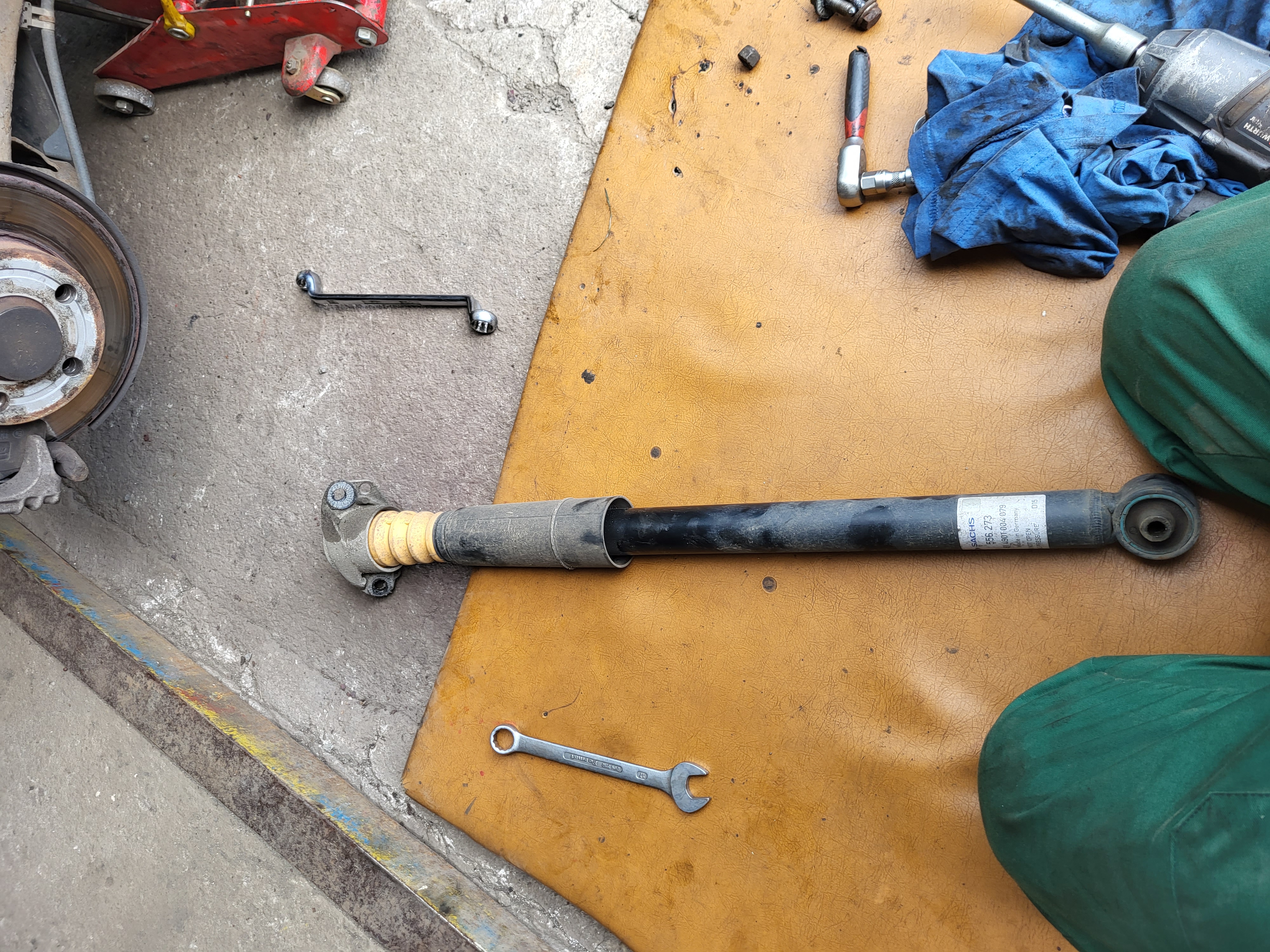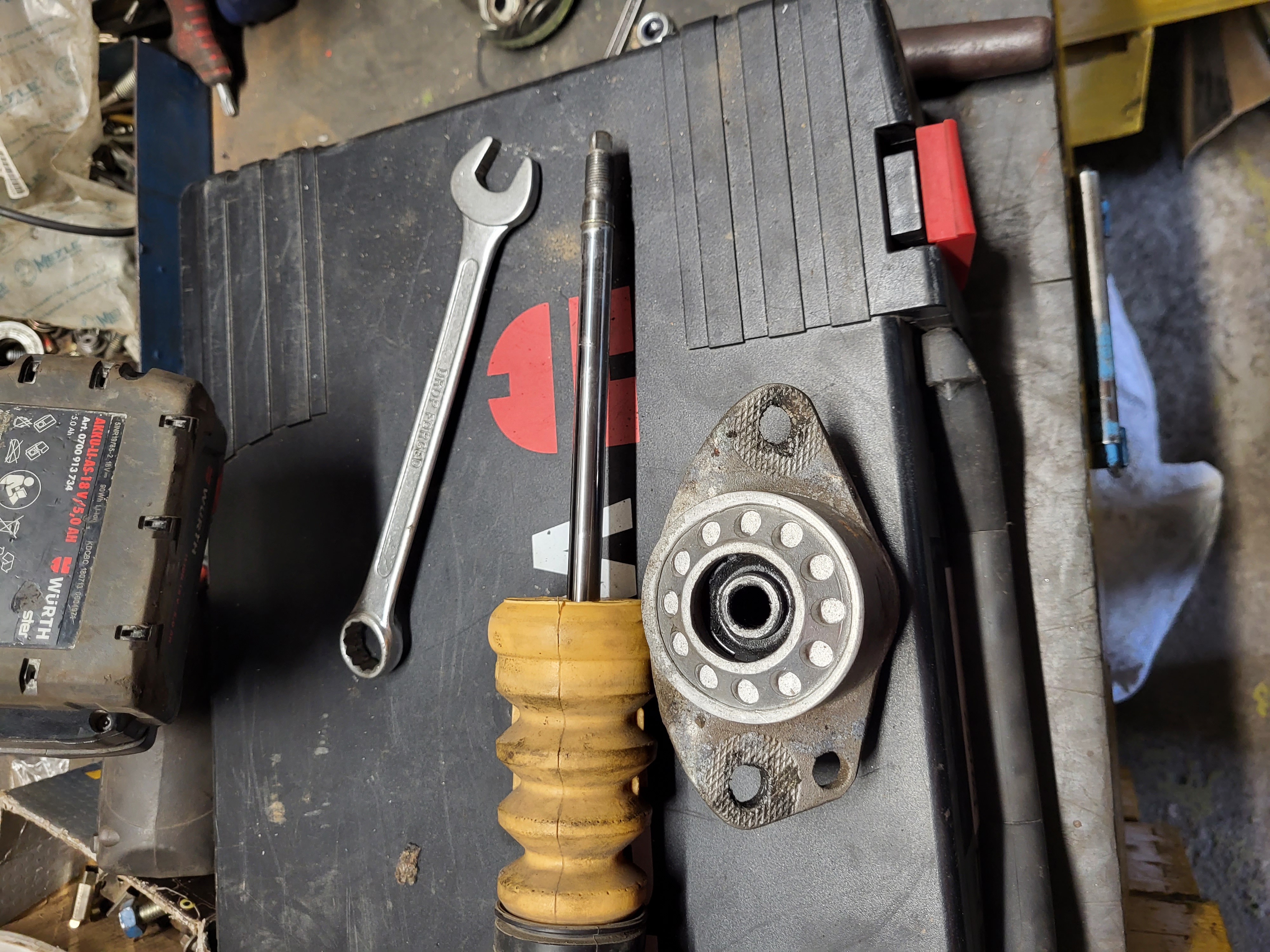 takže povolit kolo zvednout podložit tak aby to na nas nespadlo sundat kolo demontujem zadní tlumič demontujem horní uložení problém je v tom že na tom tlumiči je zarážka v podobě pérovky a to je dle mě prostě málo takže sem vzal silnější kovovou podložku poupravil tak aby šla na tlumič a vešla se i do vnitřku toho uložení namontujem uložení i s podložkou a jednu podložku sem dal i z vrchu pod matku a řádně dotáhl tlumič namontujem zpět do auta dáme kolo utáhnem a uděláme to samé i na druhém zadním tlumiči